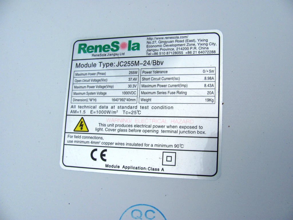 dnes mi vítr sundal ze střechy 4 ks Polykrystalů Renesola 255Wp.