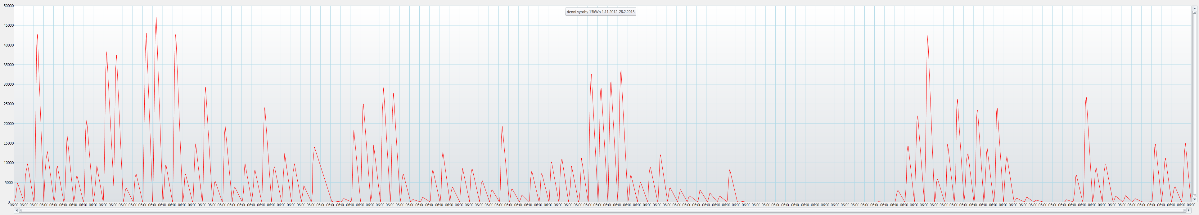 jak píšou předřečníci, dej pozor na Tvá očekávání. Přiložený obrázek ukazuje denní výroby 15kWp FV pole na střeše (jih) v období 1.11.2012 - 28.2.2013 (zobrazeno ve Wh, takže děl 1000 a budeš mít kWh). Denní výnosy poděl 4x a budeš mít představu jak Ti asi bude to co plánuješ v zimě vyrábět. Jsou tam výpadky, neřešte proč - nejsou delší než dva dny výpadku v kuse.