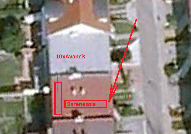 potřeboval bych poradit s umístěním panelů na střechu. chci tam dát 10 ks amorf Avancis 120W a 9ks poly Renesola 250. Ty panely budu orientovat dle obr. Budou nějaké problémy se zastíněním? Každá skupina bude mít svůj regl.