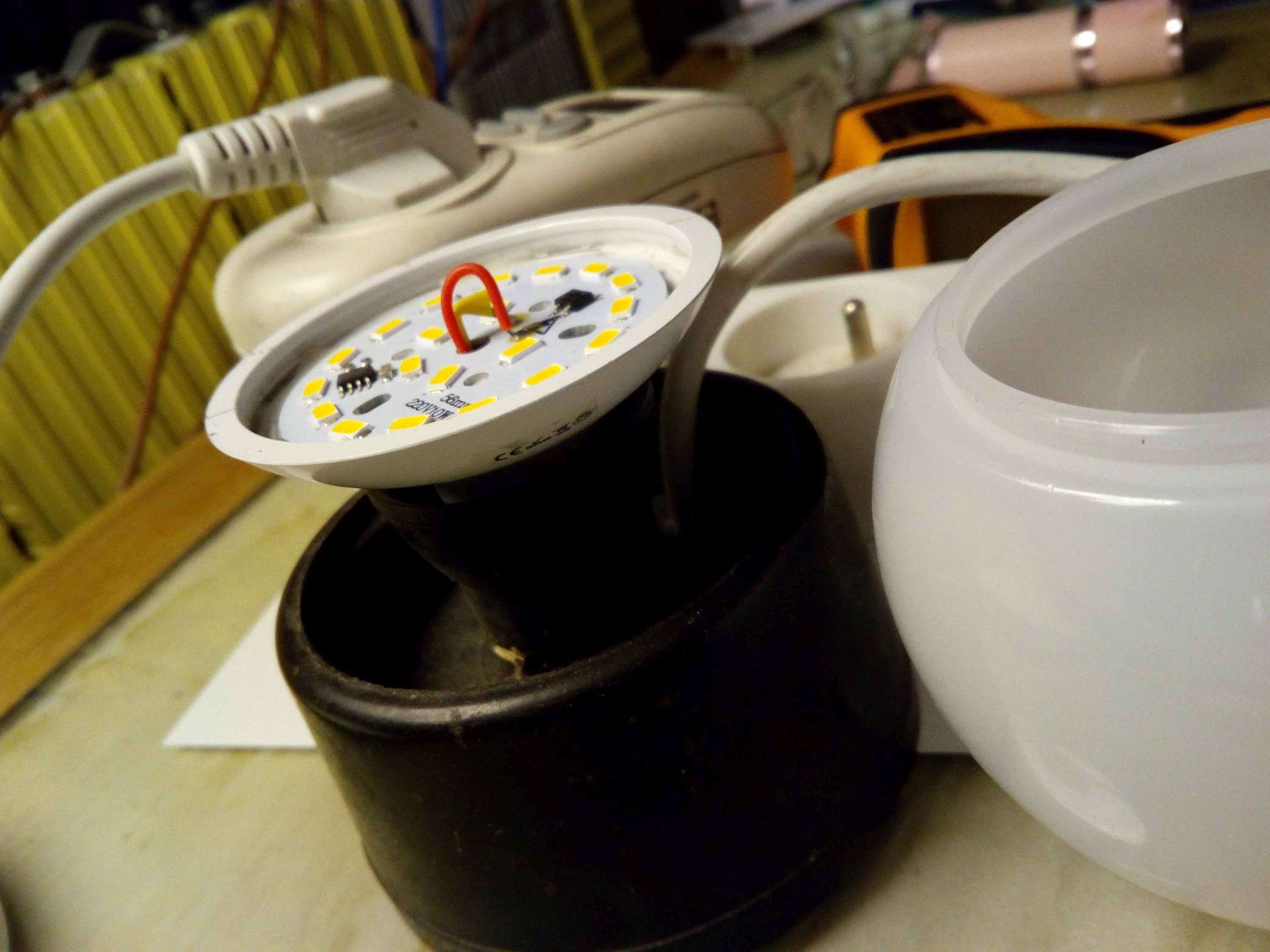 10W LED svítí intenzivněji než 21W kompaktní zářivka, dokonce bylo třeba snížit napětí seriovou diodou, bo si rodina stěžovala, že svítí až příliš.