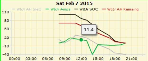 pokud to chápu správně, tak NET Ah by mělo být to co se dodá od někud jinud než z midnite, ale jak to že je tam + 20Ah, když to nic jinýho dobíjet nemůže? Potom je vidět jak vybíjím baterky co to de, dokonce pod 0Ah - skutečná kapacita je vyšší než nastavená v systému, samo se to nezkalibruje. Navíc na začátku je vidět, jak se baterky nabíjí, i když podle midnite jsou nabité na 100 procent, on se za pár dní prostě "ztratí" Takže graf pro graf a hodnoty pro hodnoty, veskrze k ničemu. Běžně se mi stane že dle wbjr je v baterkách 30Ah a najednou poplach, že jeden článek je pod 2,7V a ostatní mají 2,9V..... Možná BMV od victronu funguje líp, přes rs232 se z něj dá snad taky něco vypáčit, a nebo valc, tady toto mě vyloženě zklamalo.