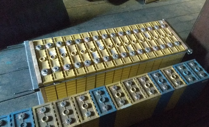 sestava starších baterek LiFePO 200Ah, 300Ah a 50Ah. Reálná kapacita 400Ah.