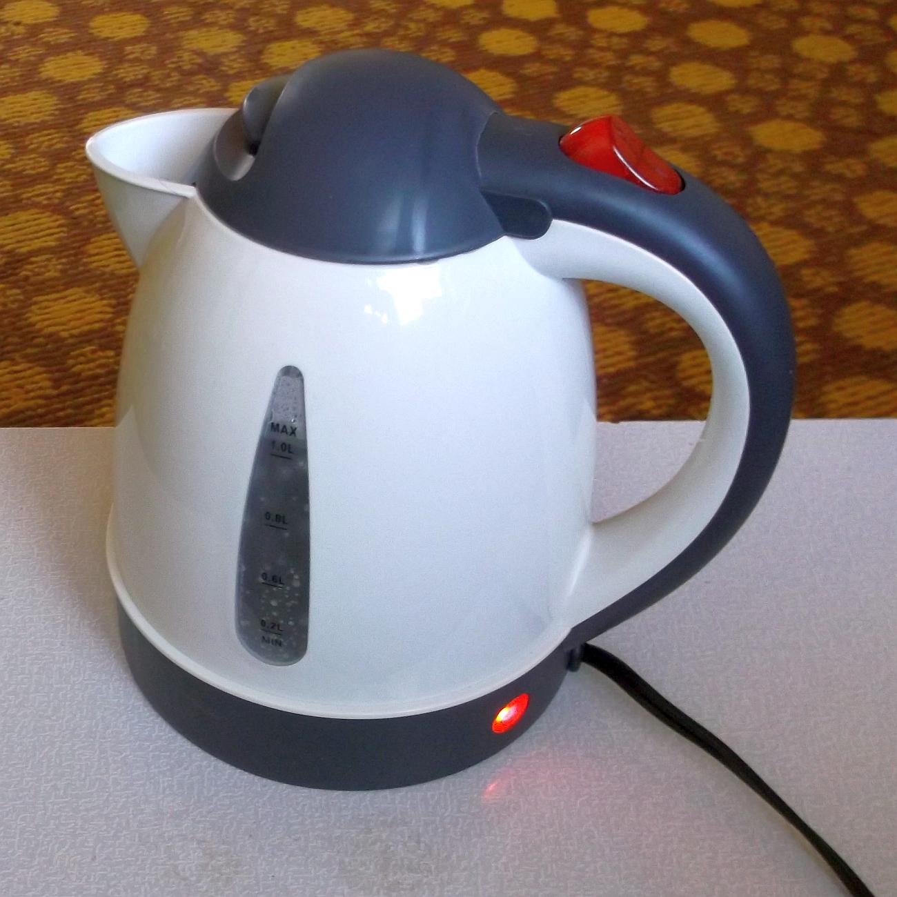 Kanvica na 24 V s příkonem 250 W slouží jako záložní zdroj ohřevu vody, který ohřeje přibližně 0,83 litru vody do varu za 20 minut. Přestože není rychlovarka, funguje spolehlivě a termostat vypíná včas. Pro každodenní použití na kávu nebo čaj je vhodnější celokovová kanvica, značka Auto Kettle, vyrobená v Číně.