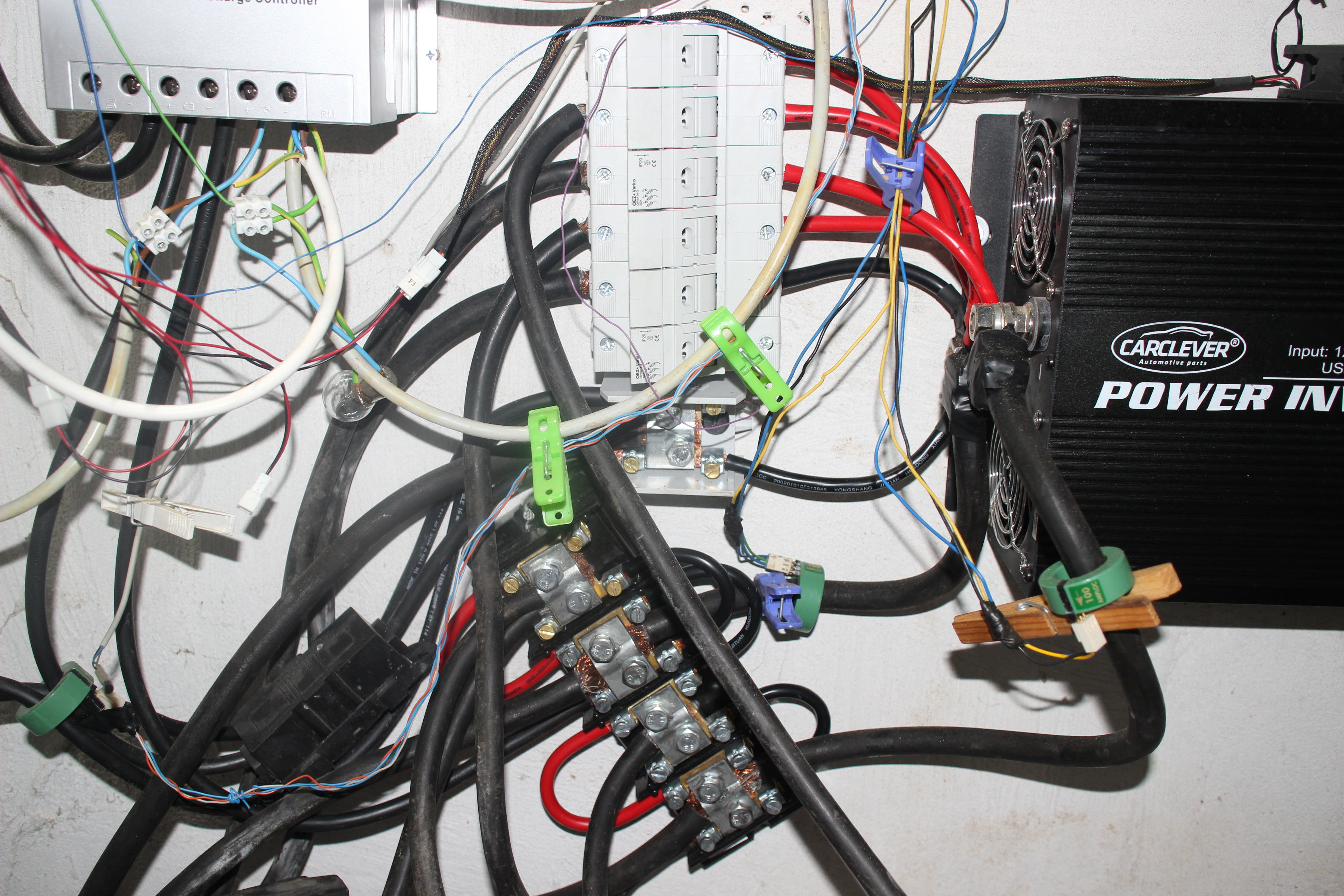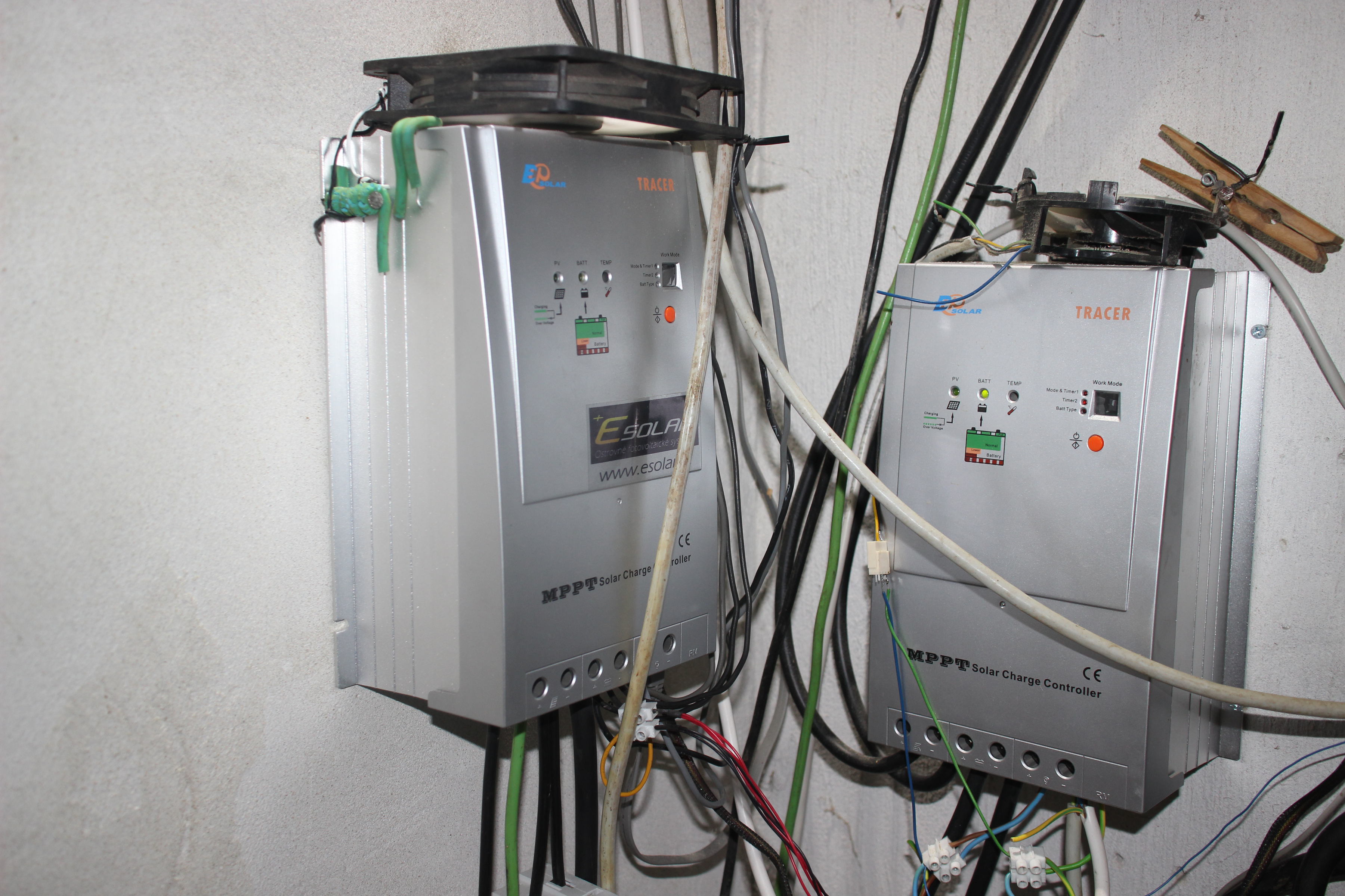regulátory 2 x EPsolar 40 A, menič Carclever 3000 W / 12 V.