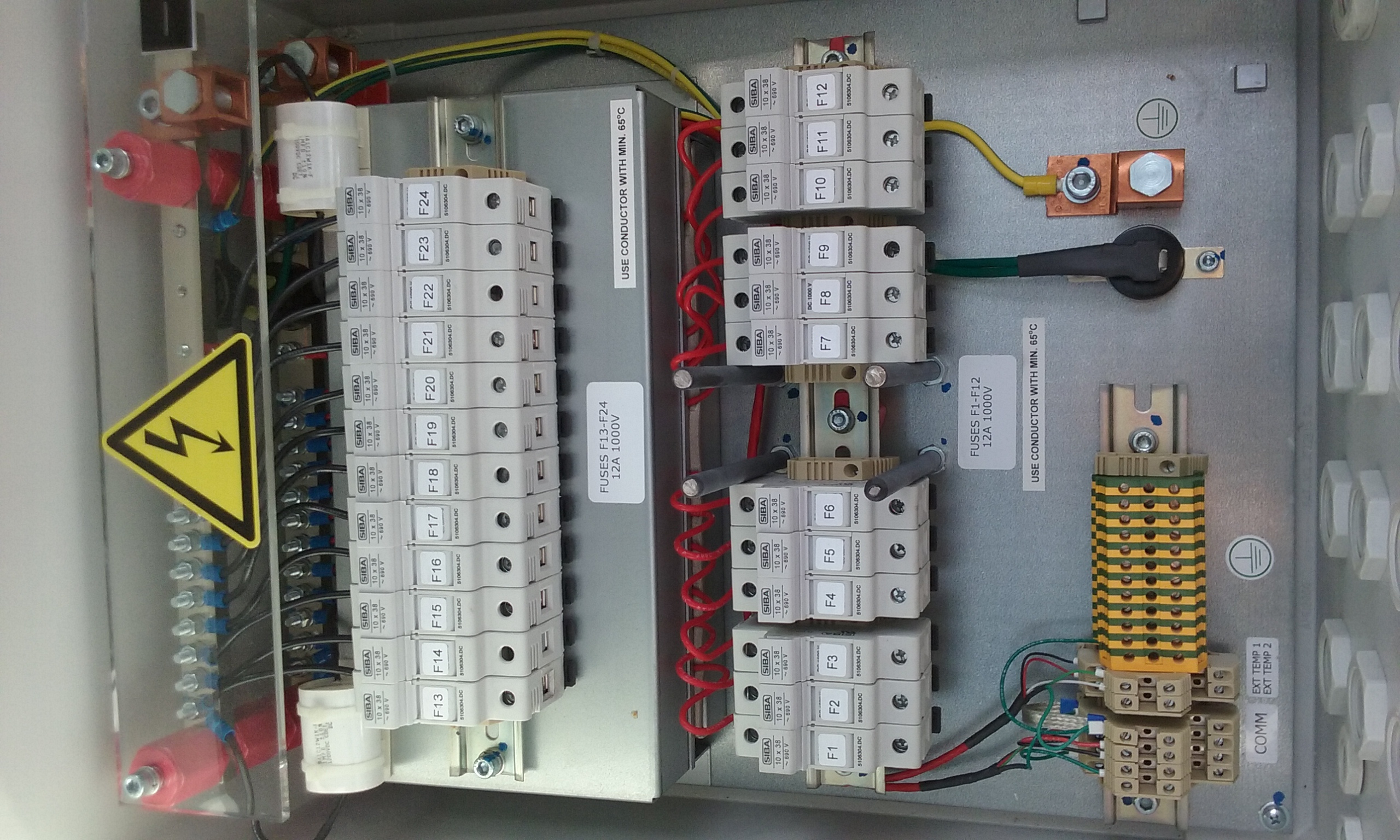 součástí rozvaděče je pod tim plechem elektronika co kontroluje každý panel teplotu atd. a odesilá data po seriové lince takže je kontrola na celým stringem na dálku