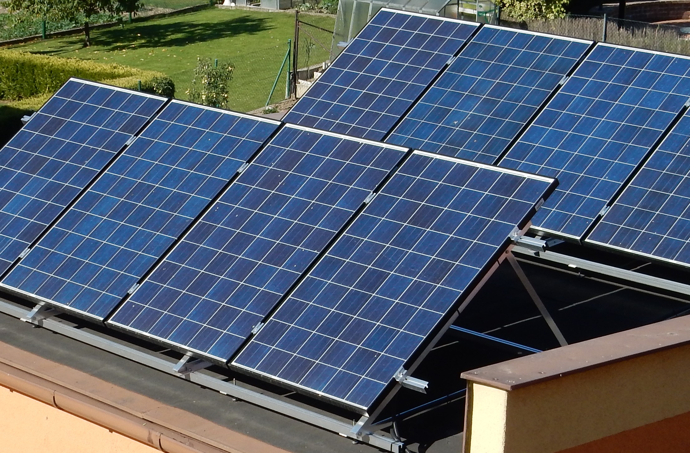 Panely jsou umístěné na ploché střeše hospodářské budovy. orientace je JJV.