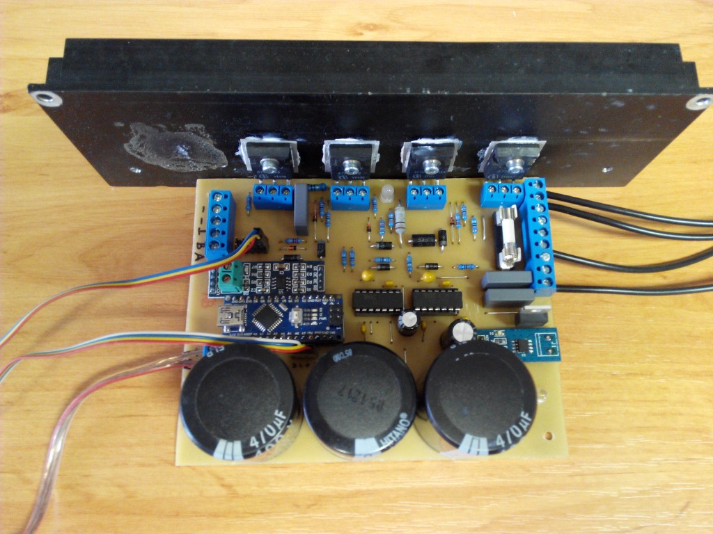 Propojovací vodiče od panelů do kotelny jsou 6mm2. FV pole je připojeno přes střídač s vyhledáváním maximálního výkonu, který jsem navrhl na základě Arduina.
