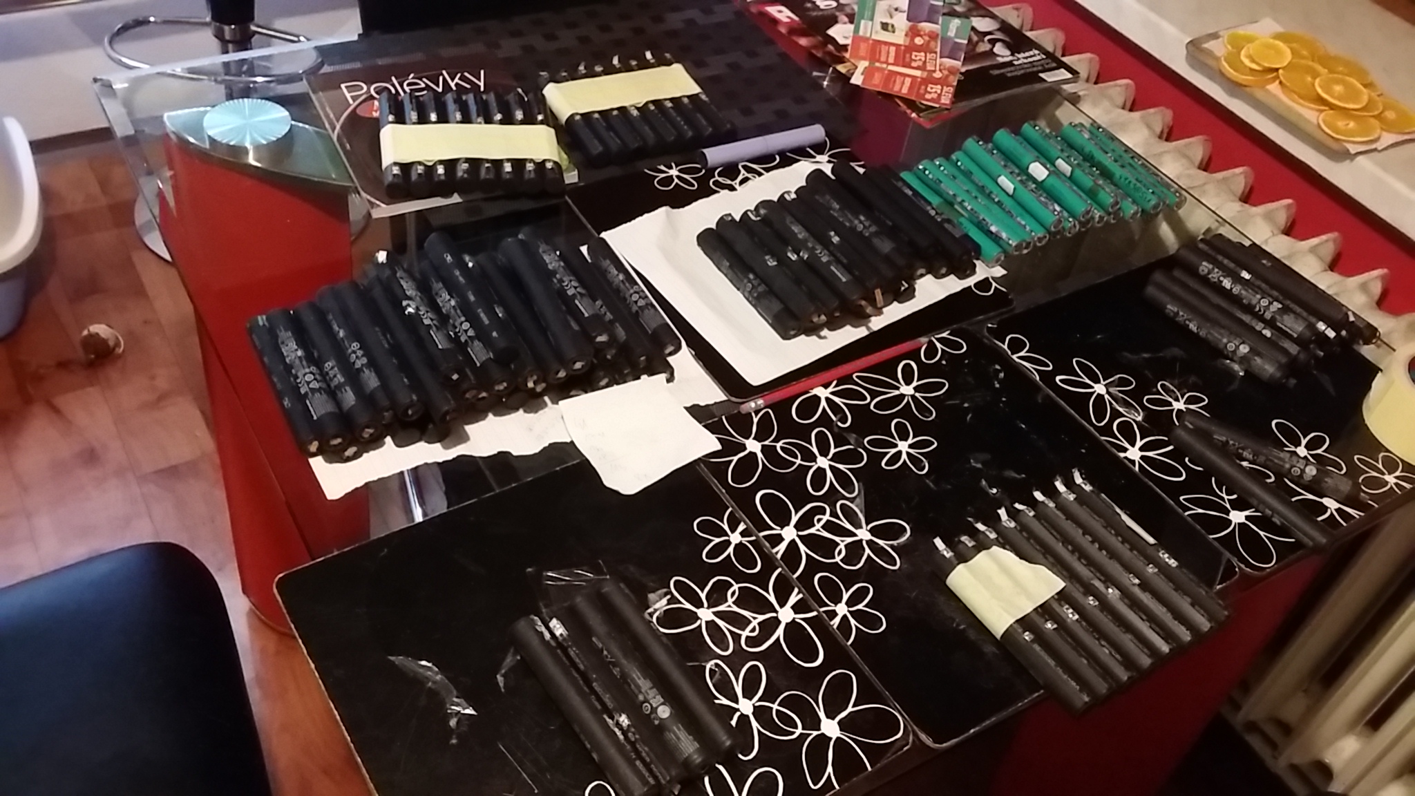 Prvních 150 cyklů mají úspěšně za sebou..Dával jsem jim docela sadu, kdy sem tahal i 5kw (230V) delší dobu. Měřením teplota nepřesáhla 35 stupnů. Jednou se mi podařilo(když jsem neměl ochrany) jít skoro na 0 V. Osud celé 3,7V sekce složené asi z 60 buřtů se již nevpamatovala.