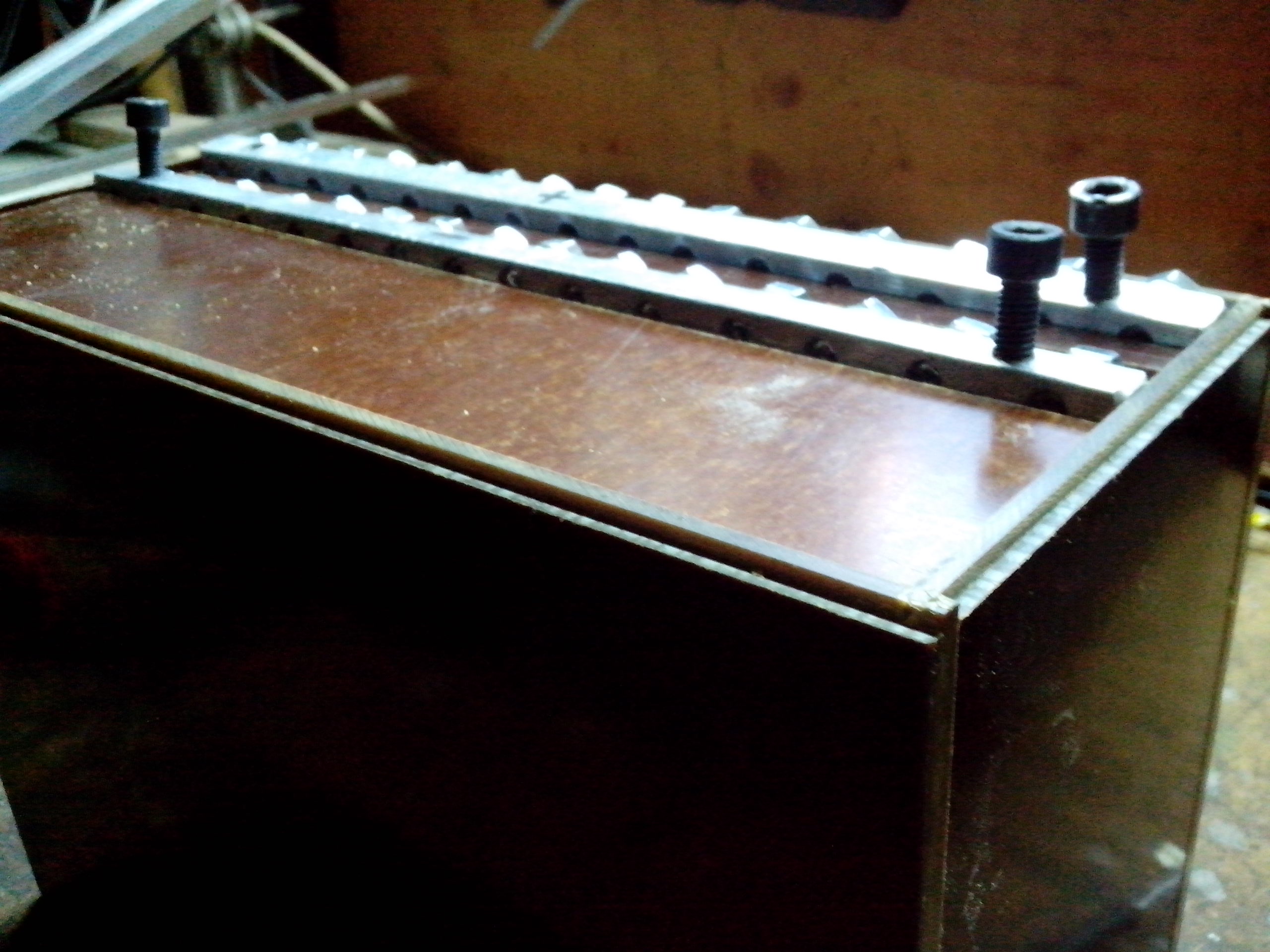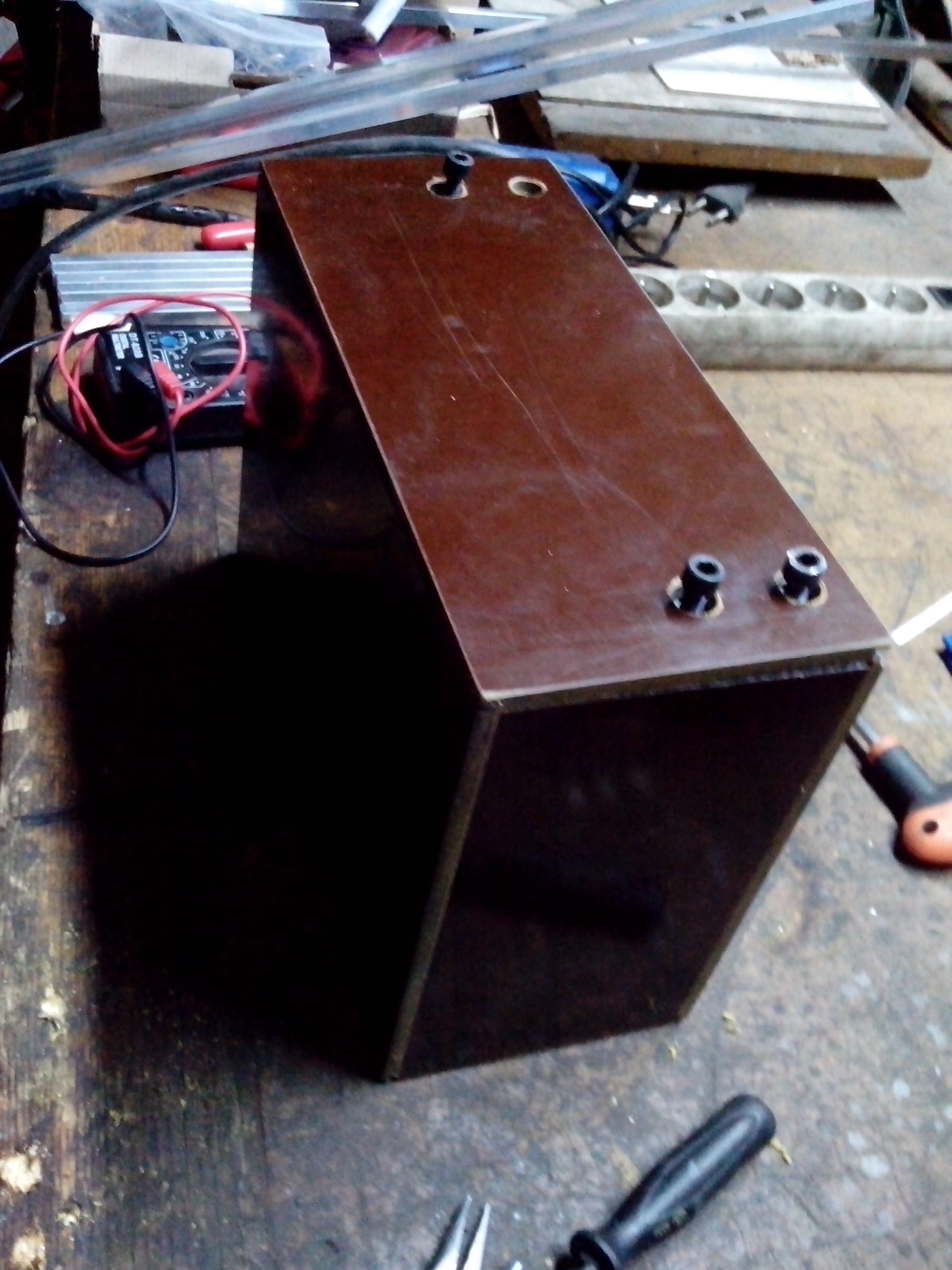 Cílem bude banka 18-19kWh s max. napětím 60V. Maximální napětí článku chci provozovat na 4V,což vede k výrobě 15 ks/345A.Jako obal jsem použil pertinax 5mm,z kterého jsem udělal krabičku se zámky(pero drážka),které jdou lepit a víko se jen nasadí a zajistí (amerikou) pro možnou výměnu a kontrolu jednotlivých článků.Tedy pokud by se něco nečekaného stalo uvnitř,vždy se tam dostanu.