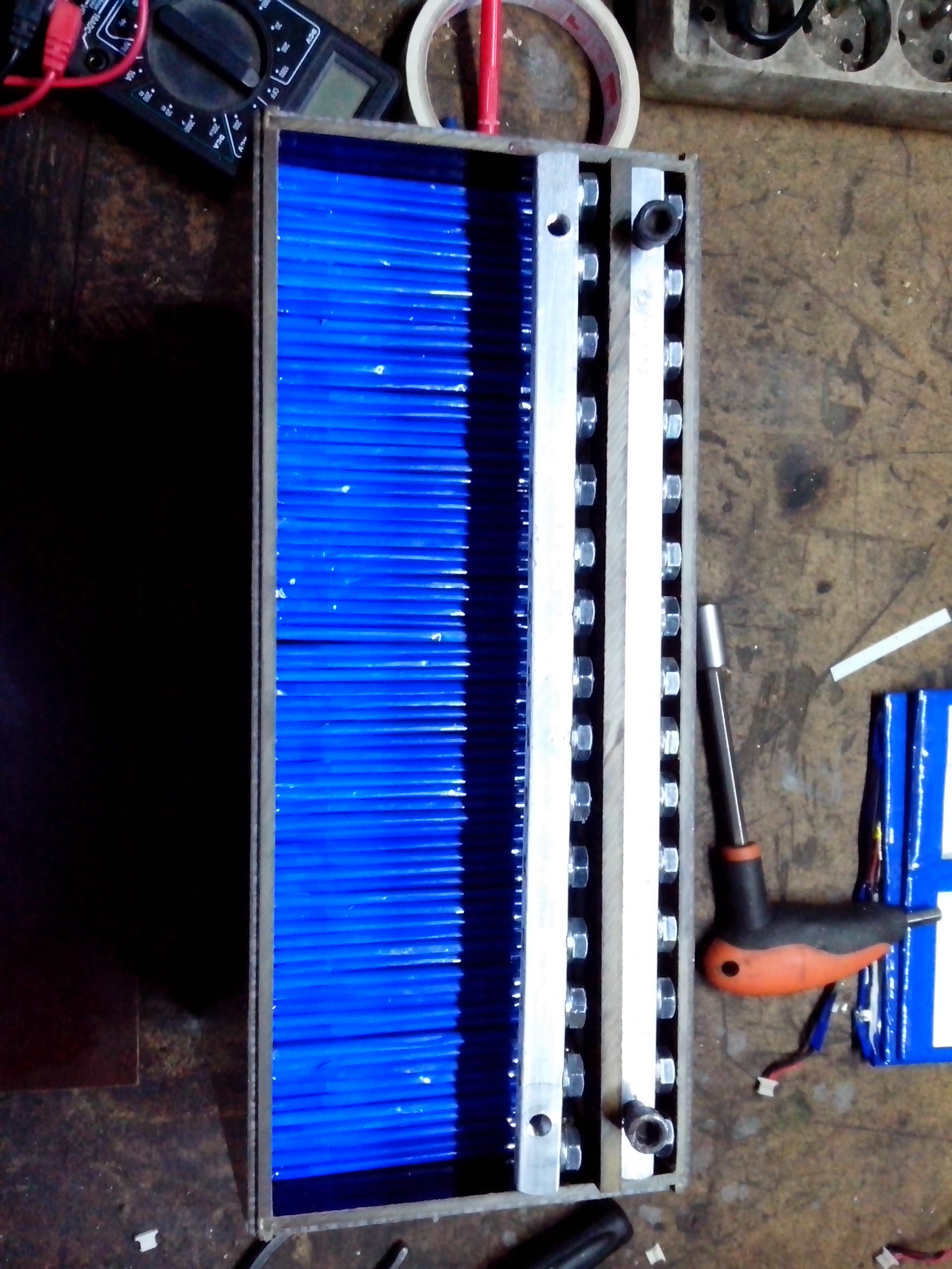 Začal jsem prototypem, kdy si odzkouším výrobu komplet obalu,sběrnic,ochrany a ověřím energetické možnosti samotného článku.Buřty jsou sice kompaktní,ale díky svému tvaru mrhají prostorem a špatně se skládají do celků.Použil jsem tedy prismatické články 4,6A/3,7V.