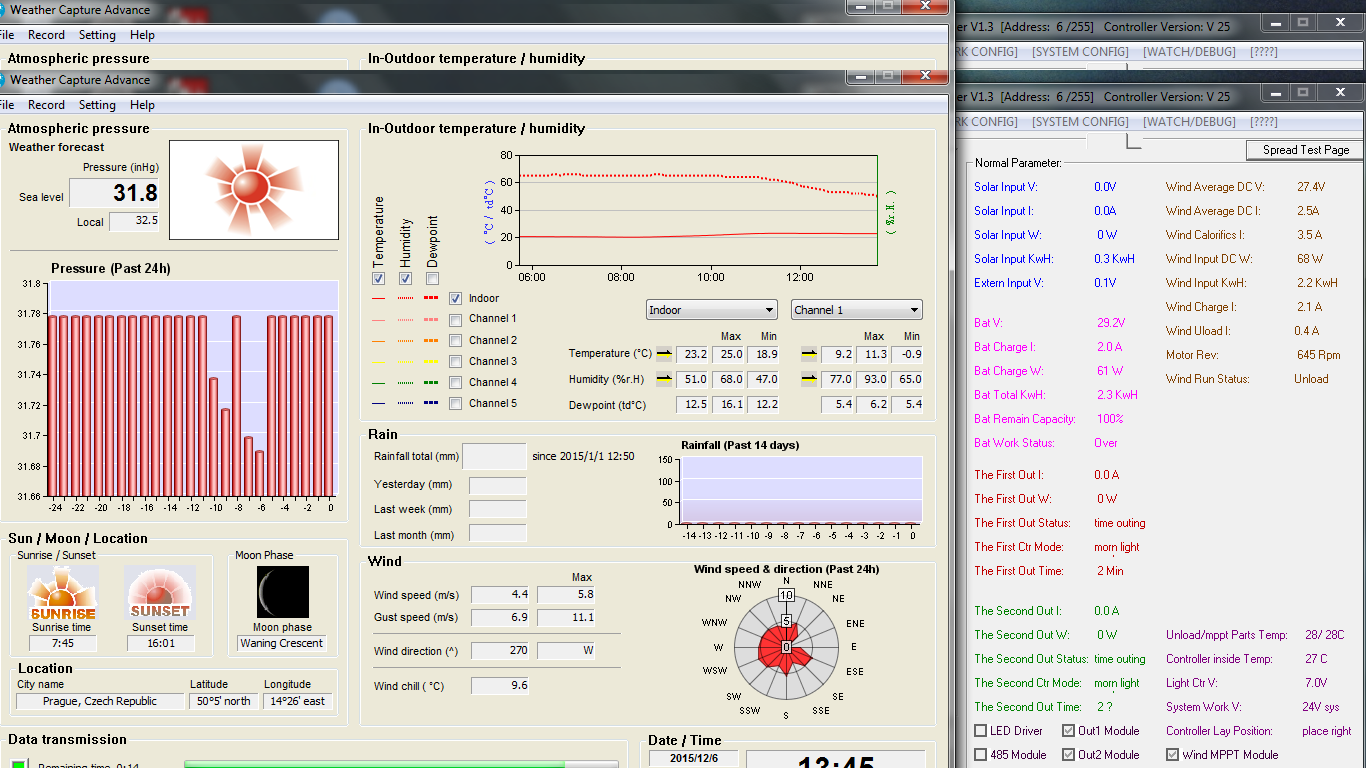 Takhle nějak to teď vypadá,ale minima jsou kolem 15W.Maxima přes 100W.Většinou se to motá kolem 50W.Maxima nárazů jsem si bohužel neužil,jelikož svítilo a vrtule byla zabržděná.