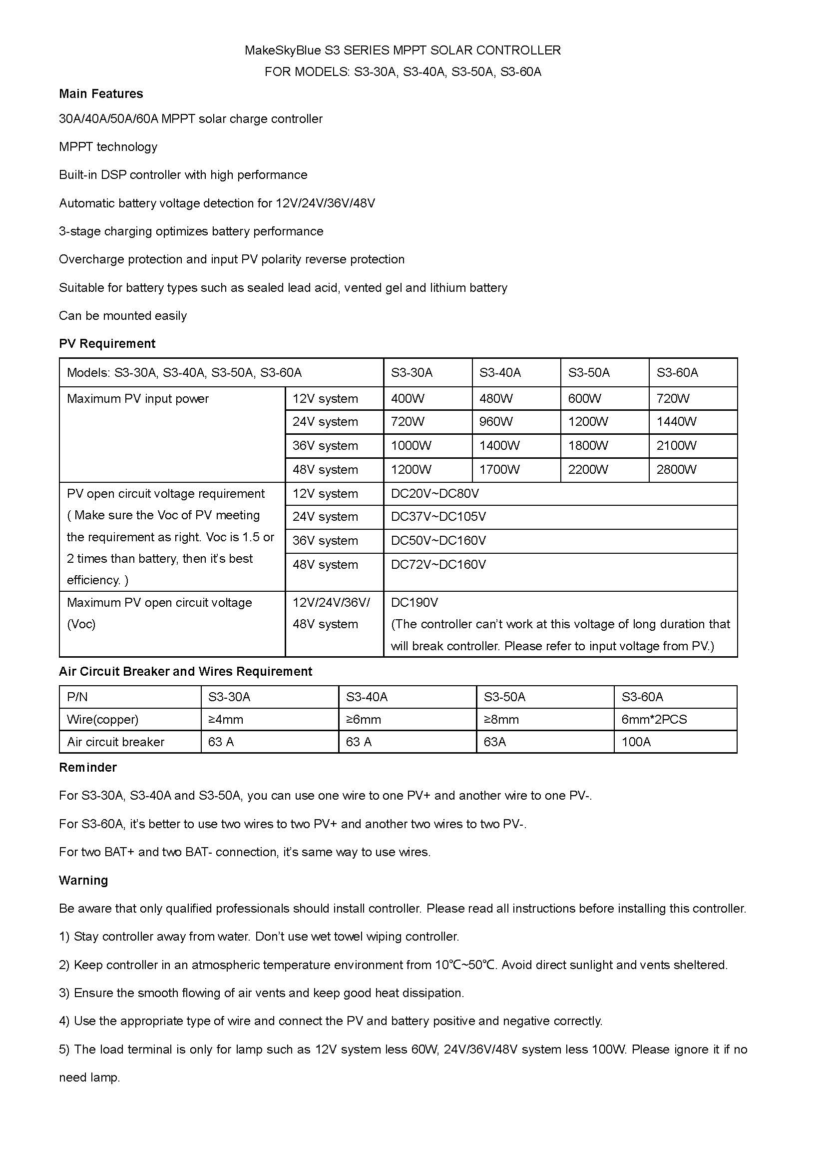 Re: 60A MPPT 12 V/24 V/36 V/48VDC 190V max