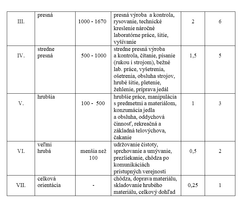 este poznamka, oko a mozog lepsie znasa nizke osvetlenie v teplych tonoch do 4000K, takze tam by som smeroval aj tu tabulku pre umele osvetlenie pri neutralnom podani cca 5000-5500K by som pridal 15% a pri studenom 6500K + 25-30% hodnoty naviac...