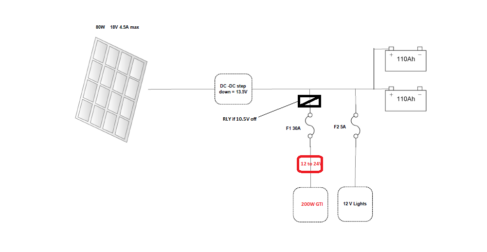 takze vie niekto o nejakom 12V GRID TIE INVERTORE alebo by bolo lepsie zapojit baterky na 24V a dat namiesto step down - step UP 24V?