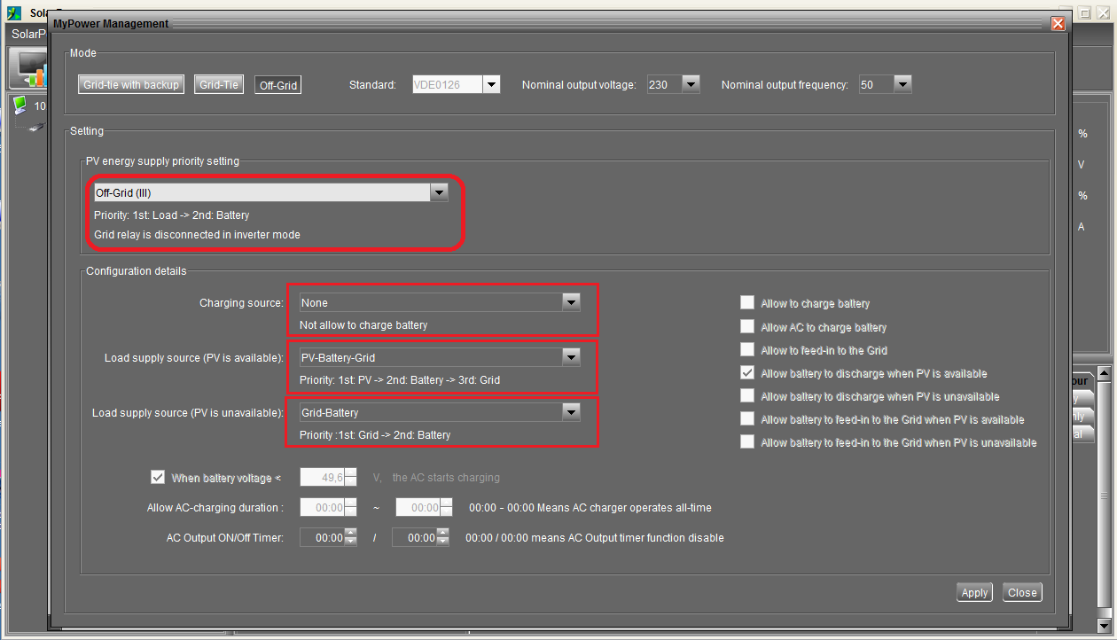 prosím Vás, nemá někdo zkušenosti s nastavením časovače AC Outpud ON/OFF u Infinisolar 3kw plus ??