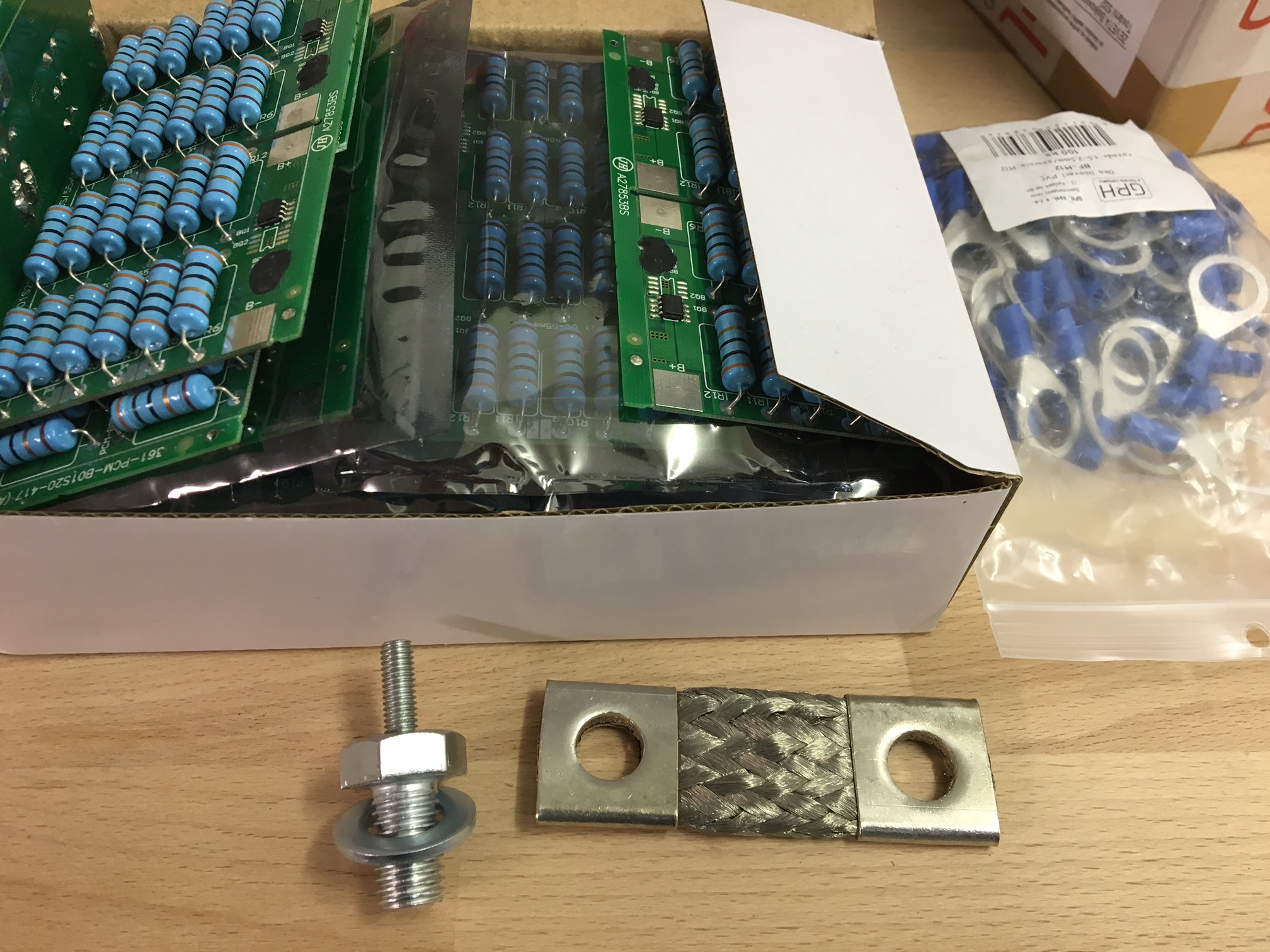 k tomu propojky z CU pletence, 32 balanceru 1,7A, 32 kabelových oček a šroubky s podložkou.