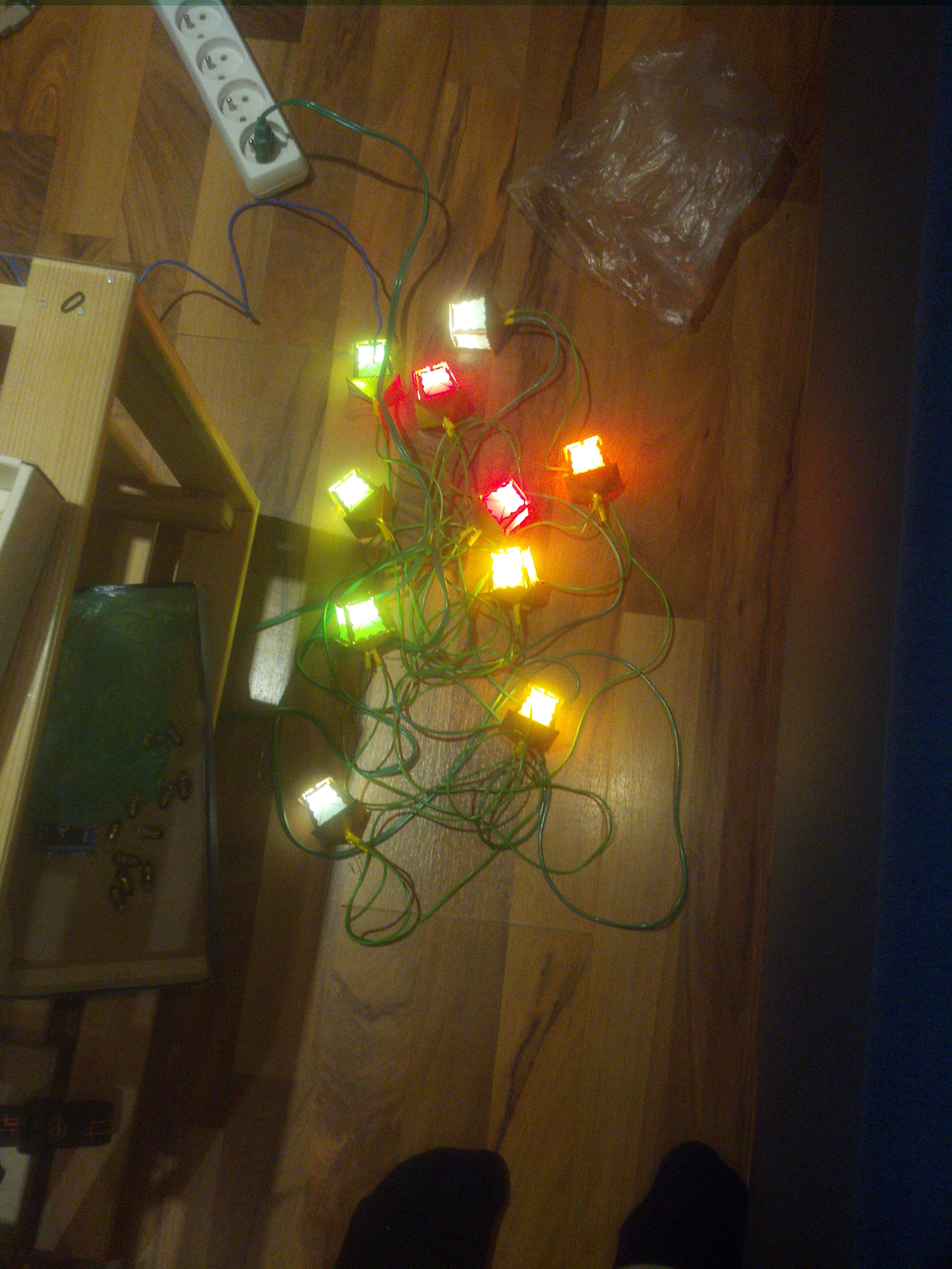 Situace: x (>=25) let stará vánoční světýlka. 10x24V žárovek v serii, to se strká přímo do 240V AC.