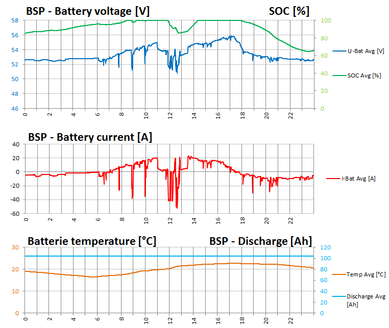 Baterky se do bulky dostanou relativne malo casto. jen kdyz jsou relativn dost vybite (SOC tak pod 30%) a dojde k nejake vetsi odberove spicce. Tim klesne napeti a prejde se do bulku.