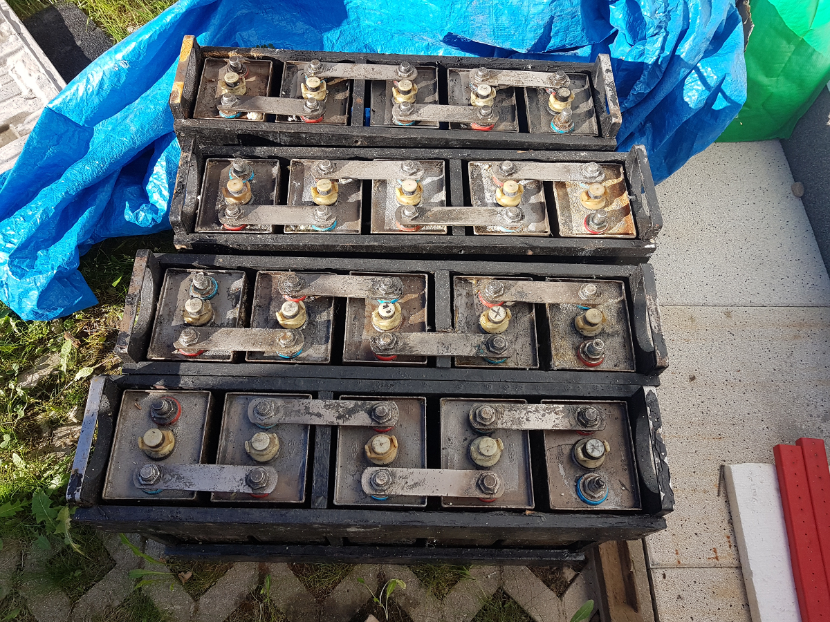 Ty dva označené jsou trochu horší(oproti ostatním). Provozované v 24V systému cca 1rok. Regulátor měl absorbci nastavenou na 32V a vybíjení nikdy nešlo pod 22.5V. Dolévané samozřejmě destilkou, měněné vrchní gumičky a zmazaný:-) vazelínou. Provoz ve venkovním boxu obložené polystyrenem a chráněné proti dešti. Odběry nikdy nepřekračovali 100A(jištění a hybridní měnič). A při nabíjení mi to do obou boxů nedávalo víc jak 60A a tak na ně připadalo cca 30A nabíjecího proudu.
