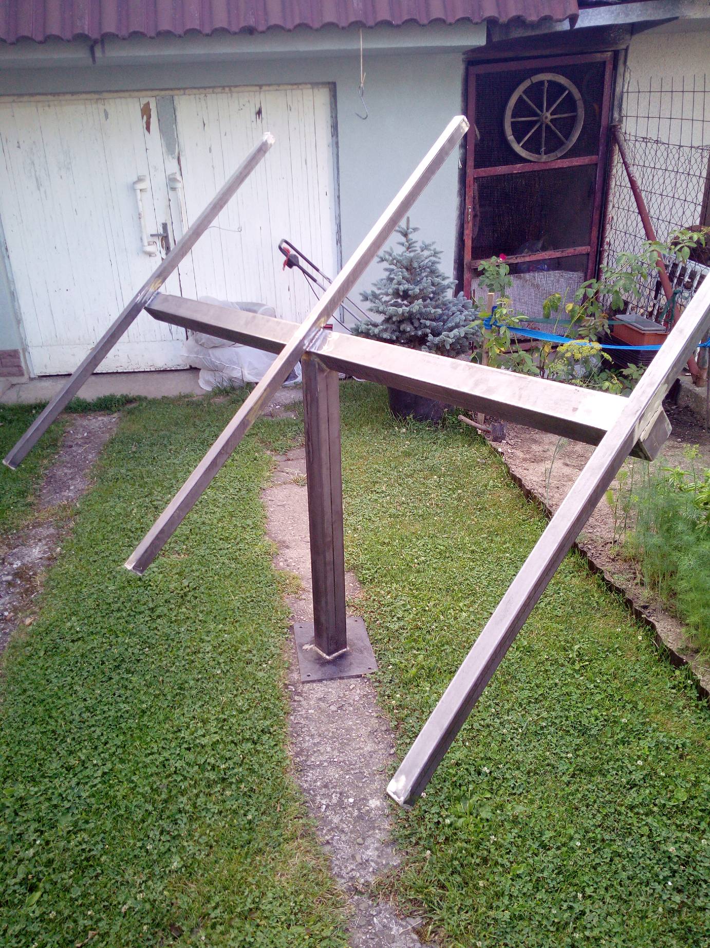 Stojan teda ešte spevním, ono to na foto nie je moc dobre vidiet ale ten stojan je tak z polovice skovaný za tým stítom a v smere vetra je ešte o 10 metrov velká koruna stromu. Mám však podobné obavy a ešte to dáko poriešim. "Rozvadzač" je len taká hračka idem v pondelok na dovču a chcel som to otestovať. Vypnem to a dorobím po dovolenke