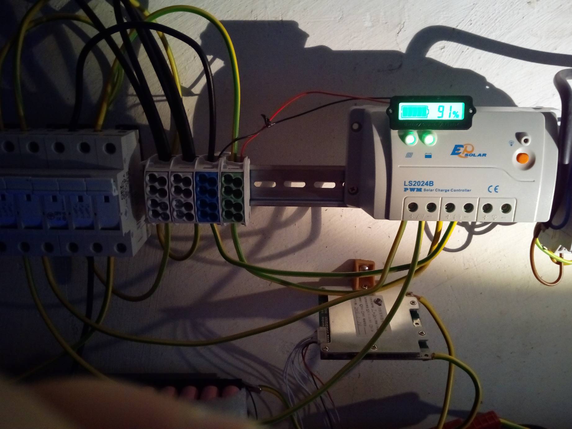 Posledné dni som začal kompletovať moju malú solárnu elektrárničku 2*270W, je to „hybridný“ ostrov. Elektrina je dodávaná do obývačky kde je na menič napojená TV, satelit, router, zosilovač a repro,xbox,PC....samozrejme nebeží všetko naraz . „Hybridný“ preto lebo pri poklese napätia na batérii a nedostatku výkonu zo slnka (zimné obdobie) bude batéria podporená nabíjačkou zo siete. Prebytky sú ukladané zatiaľ do elektrického skútra . Batéria je cca 1,8 kWh, zatiaľ 168 článkov 18650. V zásuvke mám ďalších 56 kusov, takže onedlho rozšírim. Plánujem objednať ešte 4*7 kusov, každých 7ks od iného výrobcu, po roku vyhodnotím ktoré 18650 najlepšie znášajú solárny systém. Regulátor je PWM EPsolar 20A/24V, menič Victron 375VA.