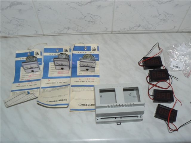 Nabízím k prodeji 3 kusy nových analogových ampérmetrů MP40 s rozsahem 300A bez bočníku a krabičkou na DIN lištu pro 2 kusy. Dále nabízím 4 kusy nových digitálních voltmetrů s rozsahem 3V až 30V, červené barvy a montážním otvorem 46 x 27 mm. Cena za celý set je 220 Kč plus poštovné. Materiál je dlouhodobě nevyužitý, vhodný pro elektrikáře i kutily. Zájemci mohou zaslat soukromou zprávu.