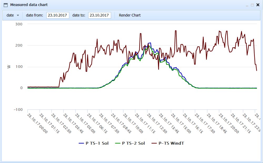 Včera Studer bez prifázovania aj vďaka pomoci veternej turbíny, ktorá zabezpečila 60% celkového zisku. Z 5 kWp FV poľa za celodenného dažďa len 2 kWh. Deň predtým to bolo ešte horšie a navyše bez vetra. Na obr. priebehy výkonov (zelená a modrá dve polovice FV poľa a hnedá je turbína).