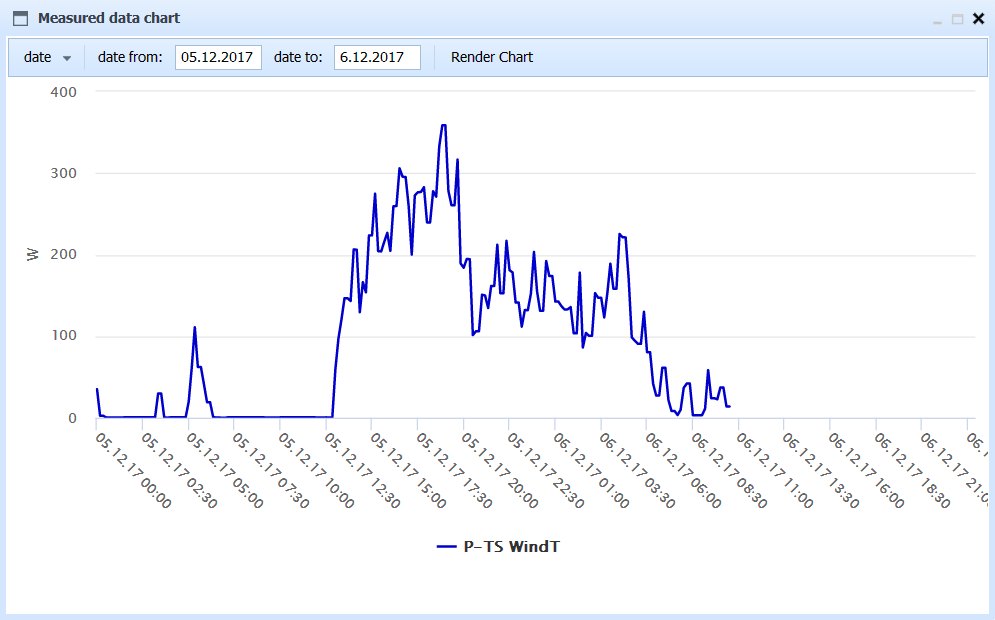 Ak viem, od kedy v dany den turbina pracuje, a pripadne mam aj ine logovanie, mozem porovnavat. Tu je priebeh vykonu vcerajsieho a dnesneho dna. To co si kybosi videl po polnoci (preklopil sa niekedy medzi 01-02 h.) bola podla prilozeheho grafu vyroba zhruba od vcerajsieho obeda, ked zacalo slusnejsie fukat. Ten graf robi 5 minutovy priemer vykonu, takze kratsie spicky tam nevidno.