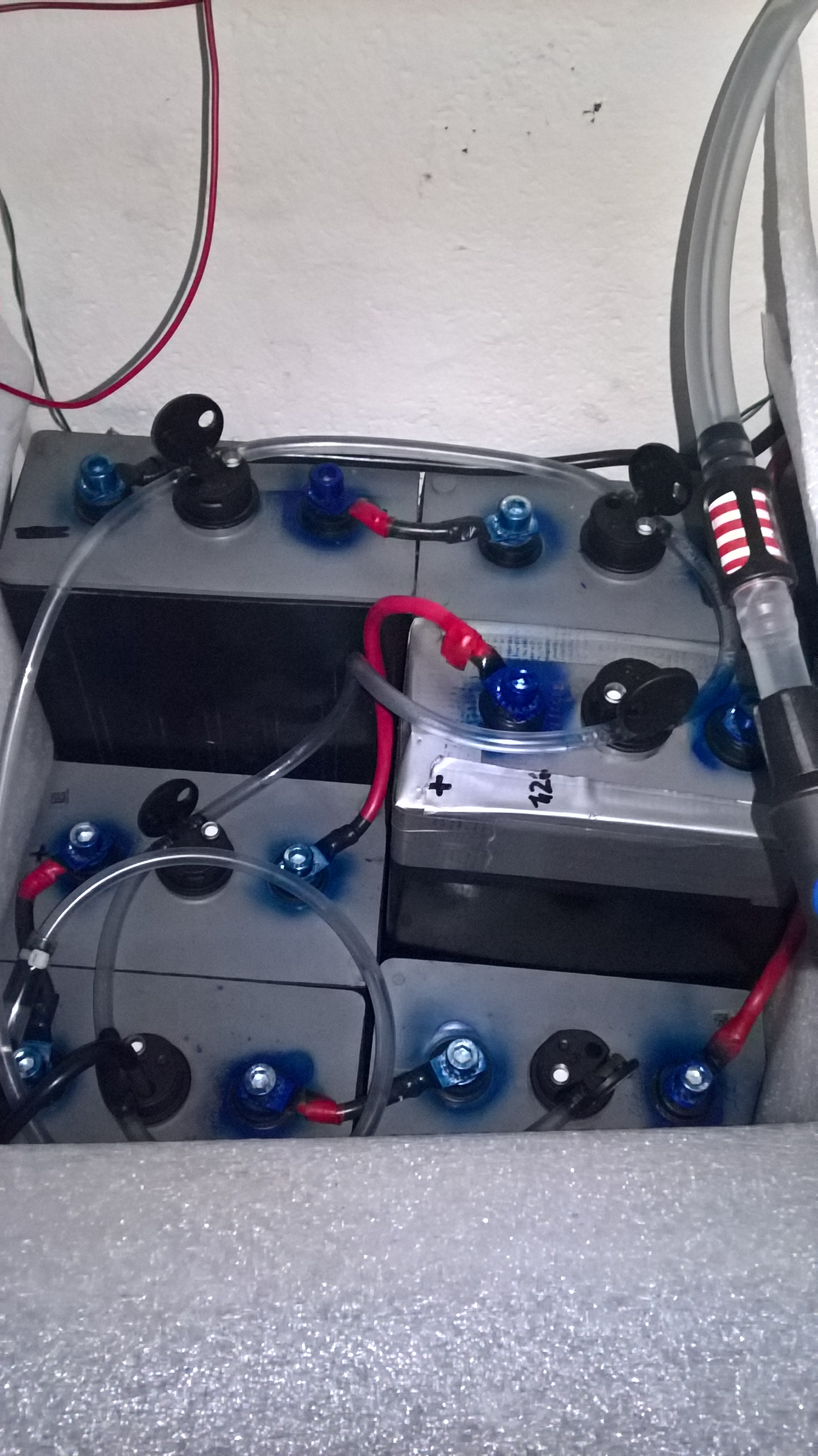 Prodám 12ks Pb trakčních článků 2V 5PzS 775Ah (ks 42kg i s elektrolytem, d100mm x š200mm x v750mm). Stáří baterií je 6měsíců. Kapacitní test neproveden, hustota jednotlivých článků 1,28 - 1,30kg/dm3 mluví za vše. Měl sem je na svém solárním systému prvně 2x 12V paralelně, nyní seriové zapojení 24V, články v top stavu, ale přecházím na 18650. Ke komplet baterii přidám gratis AQA set + propojky průřez 50mm, připojovací kabel i konektor (typ po dohodě). PC 58000. Dohoda. Možno i jednotlivě, pro zájemce mám spoustu AQA komponentů, propojů, šroubů.. Stačí napsat domluvíme se.