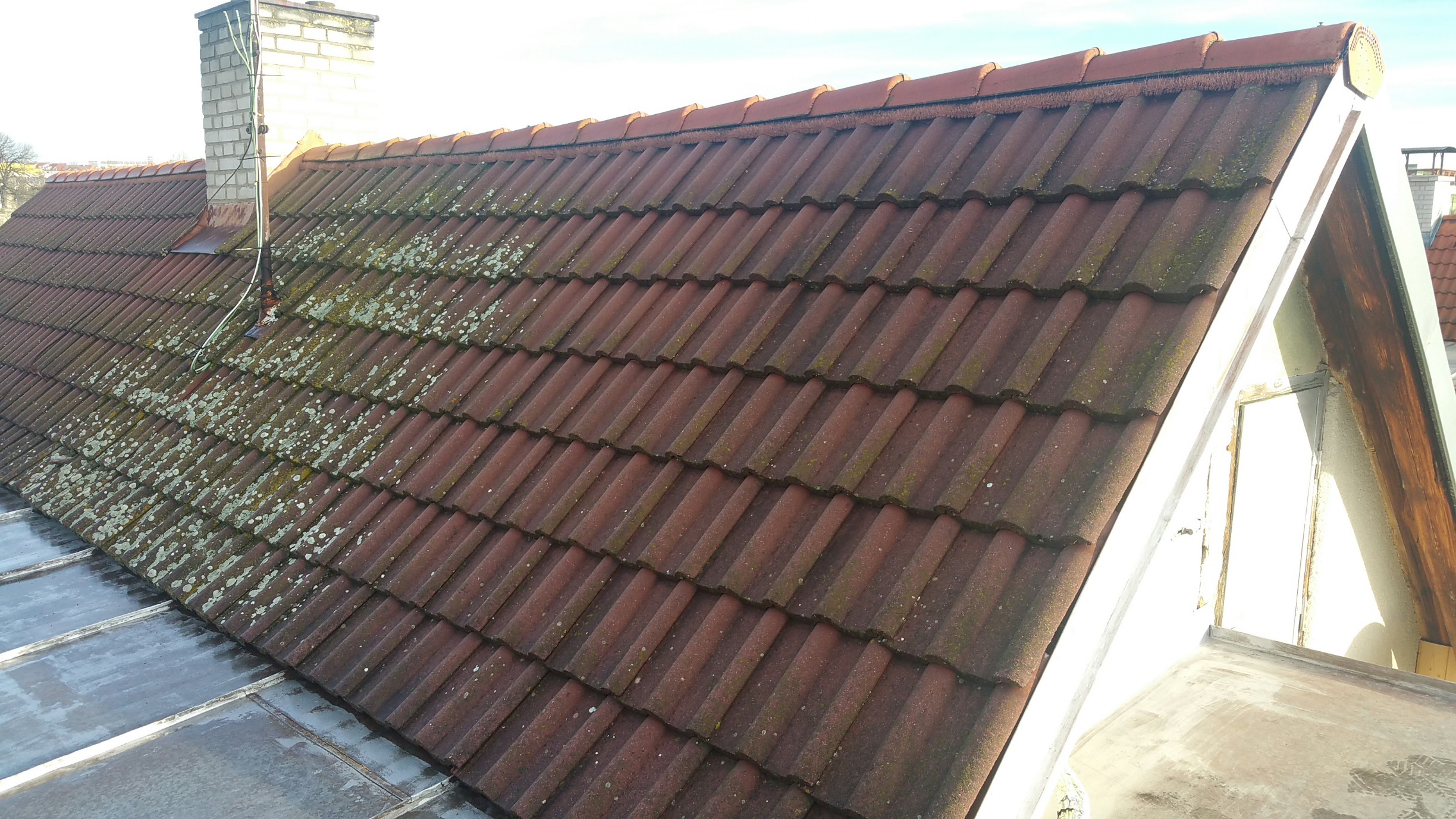 Dům má plechovou střechu sklonem cca 20 stupňů na západ(4x17m).Je zde štít s betonovou taškou o rozměru 2x9 m také na západ.Mohla by zde být konstrukce směr Jih.