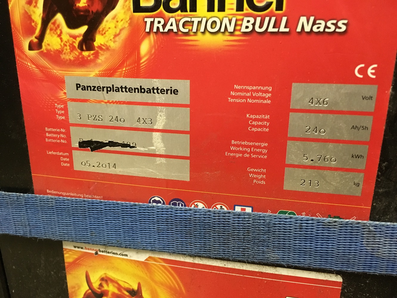 Nabízí se funkční olověná baterie Banner 24V/240Ah za cenu šrotu 20 Kč/kg bez kapacitní zkoušky. K dispozici jsou také dva desulfátory za 500 Kč/kus, které pomáhají obnovit výkon baterií. Prodávající přechází na 48V NiCd systém, proto baterii i příslušenství prodává za výhodnou cenu.