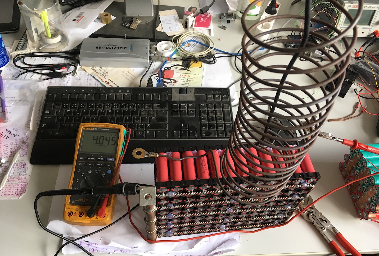 Uživatel popisuje stavbu Li-ion baterie o kapacitě 15kWh složené z 18650 článků LG HE2 s vysokým proudovým zatížením. Projekt zahrnuje výrobu sběrnic, pájení a testování vnitřního odporu a kapacity bloku. Výsledky ukazují stabilní výkon s nízkým vnitřním odporem a odpovídající kapacitou, což potvrzuje funkčnost sestavy pro náročné aplikace.