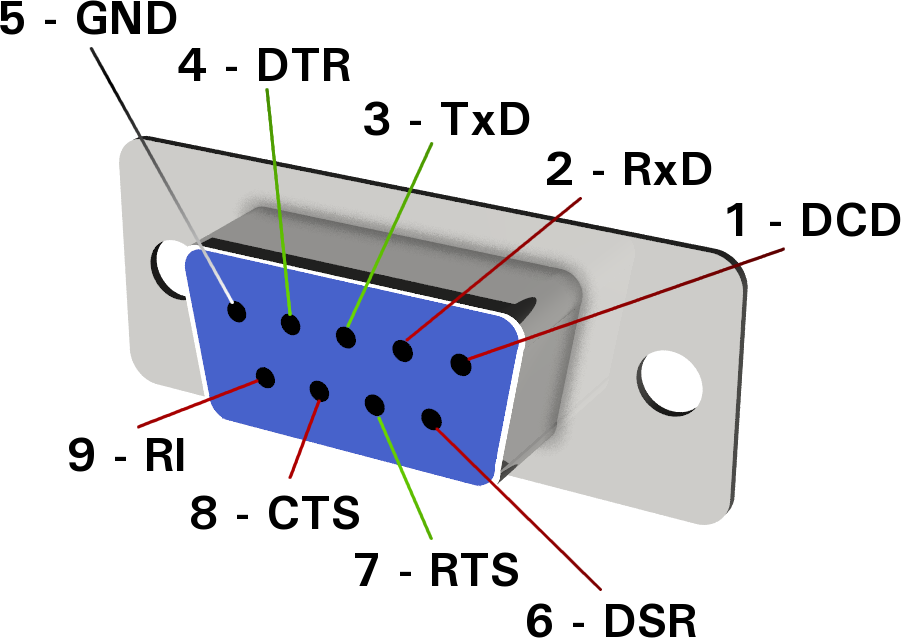 A ještě info k fyzickému zapojení. Port RS232 na měniči je ve formě DB9 female: