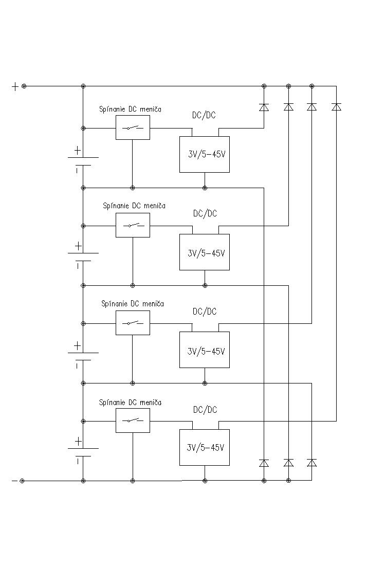 Áno galvanicky oddelené moduly by boli lepšie, ale keď tam dám oddeľovacie diódy, tak jednotlivé meniče asi budú medzi sebou oddelené, aby neprešlo celkové napätie batérie do jednotlivých DC meničov.