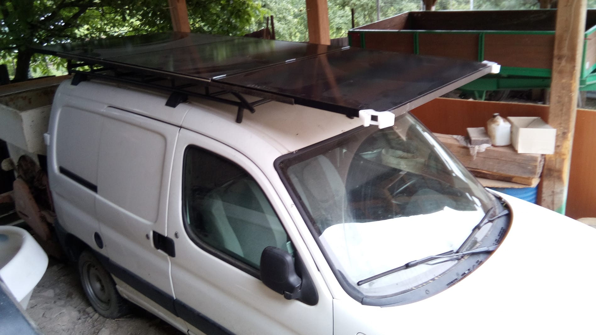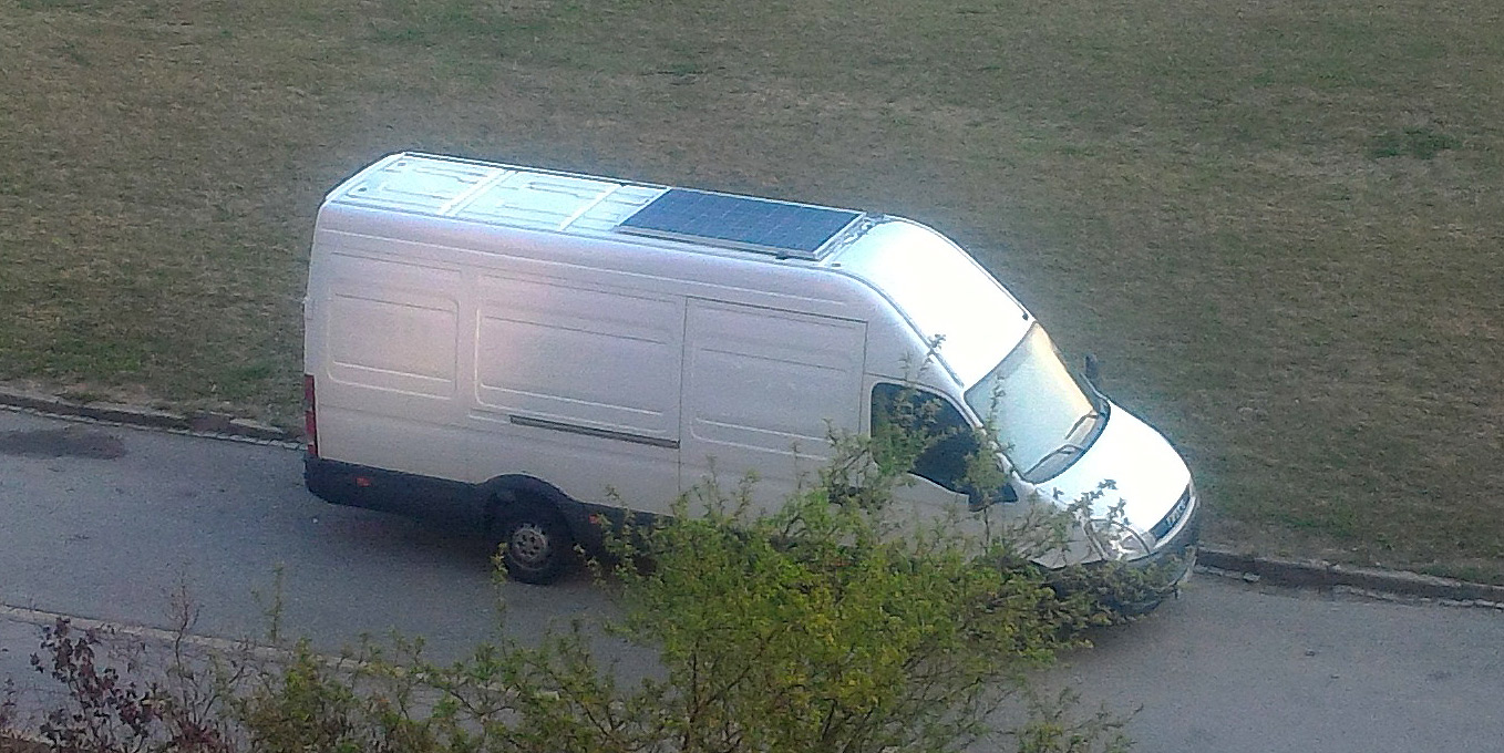 Ten panel na streche je pekná hádanka, našej predstavivosti sa medze nekladú. Jedna z možností je, že tam naozaj prespáva, hoci len občasne na cestách. Potom je napr. kafíčko a vyhrievané lôžko super bonus, dokonca by stačila len palubná batéria. Žiadny veľký problém pripojiť k nej paralelne rovnakú ....