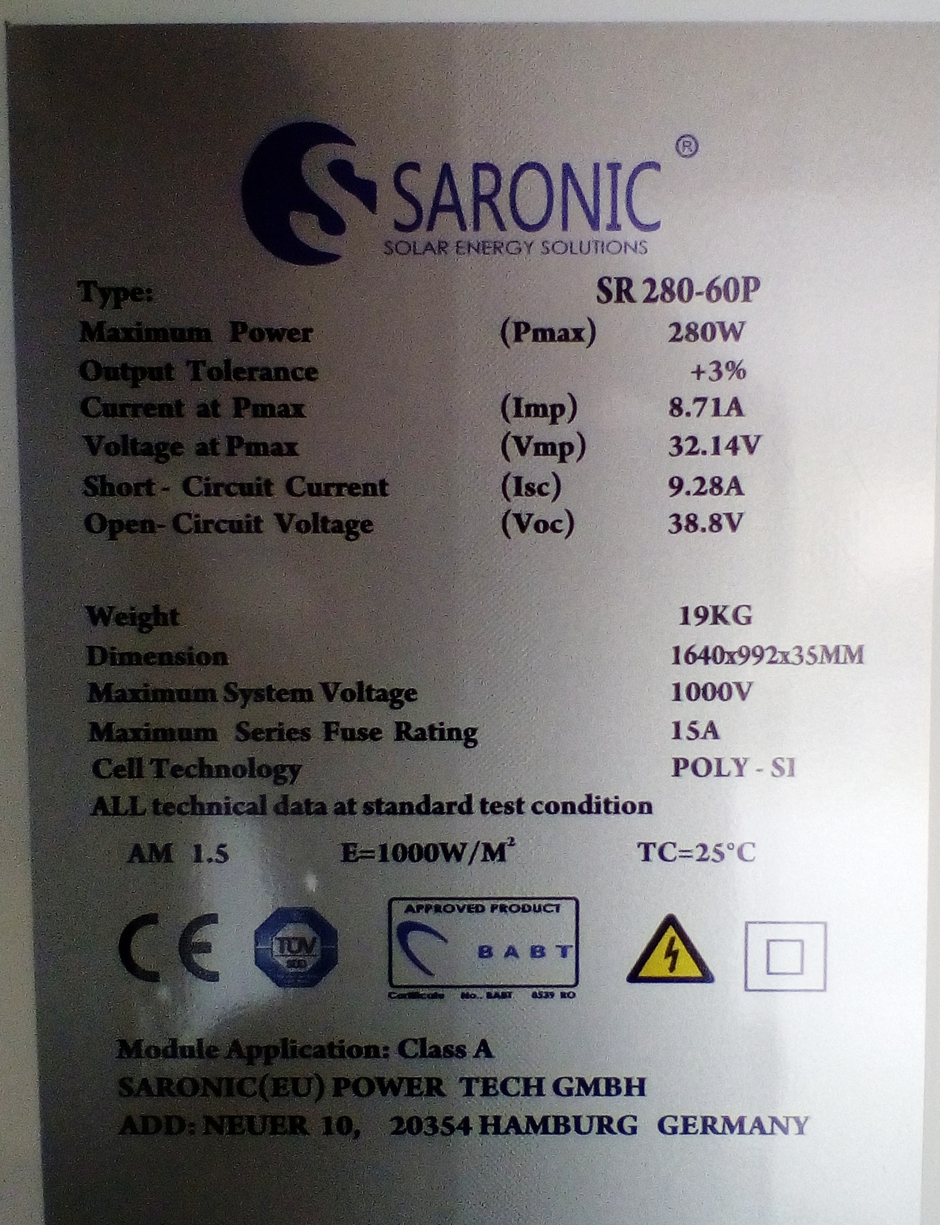 Nabízím k prodeji nové polykrištalické solární panely Saronic s výkonem 280Wp a plusovou tolerancí až +3 %, což znamená až 288Wp. Panely jsou skladem v Martinu na Slovensku, mají 60 článků a 5BB sběrnici. Cena se pohybuje od 100 do 110 eur za kus podle množství, možnost dopravy a dodání kabelů. Kontaktujte pro více informací e-mailem nebo telefonicky, při objednávce uveďte, že voláte z MYPOWER fóra.