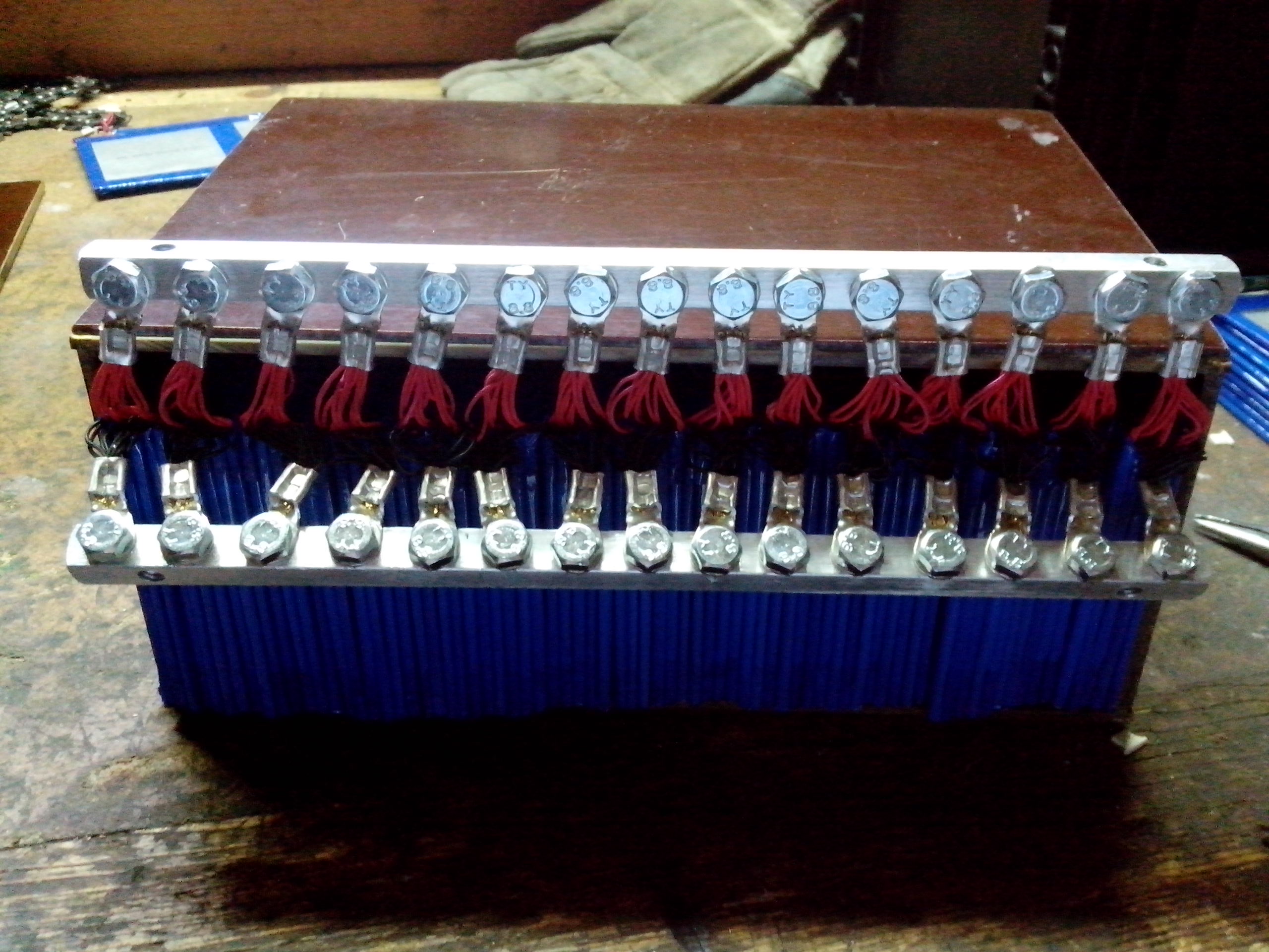 Teď jsem synkovi dělal 16V 70Ah k rybářskému člunu. 1kWh váží 7kg. Oproti olověný baterce co váží 30kg je to dost rozdíl.