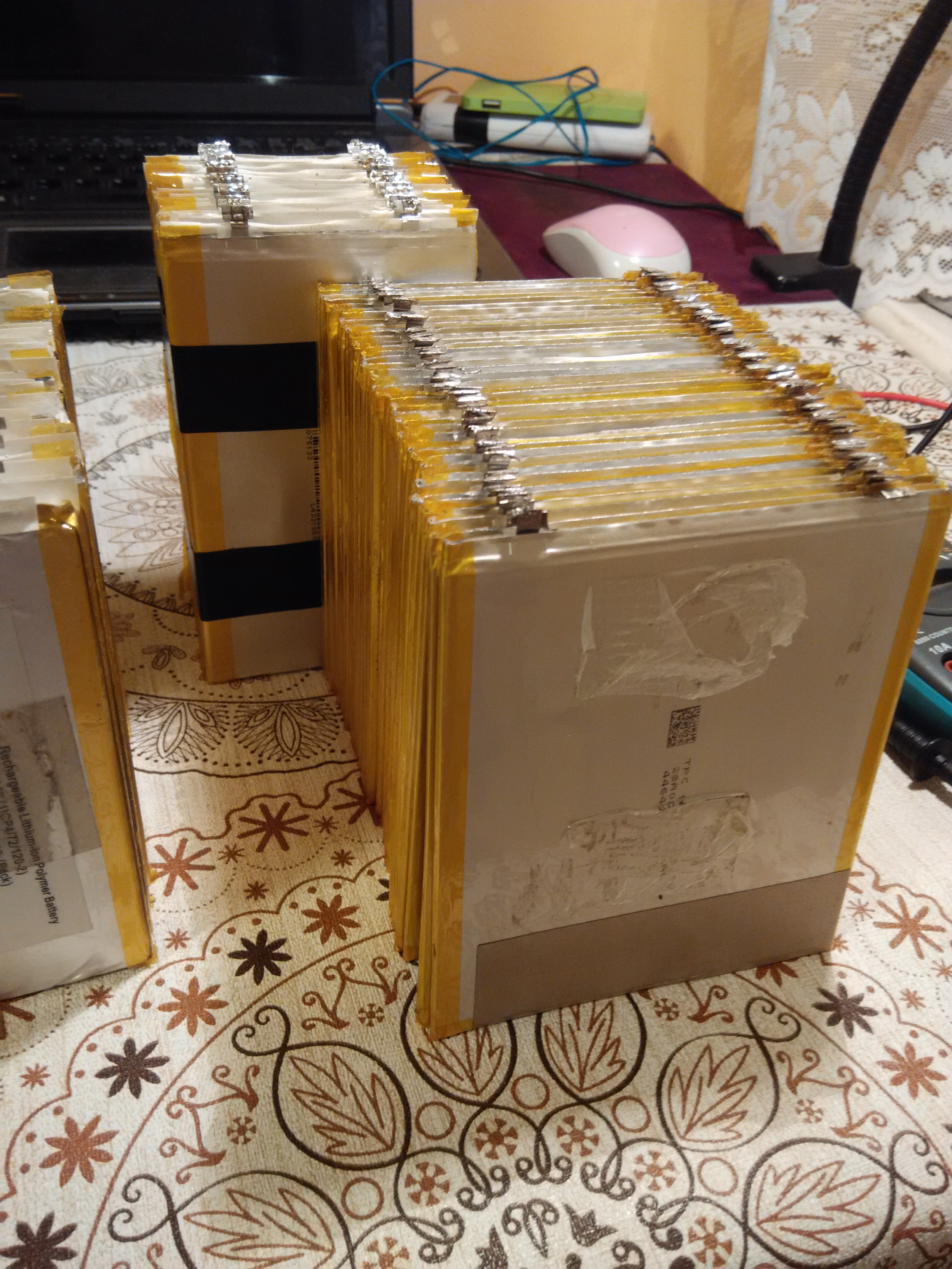 Po zkušenostech se stavbou baterie z použitých 18650 z NTB baterií a zároveň se stavbou baterie z prizmatických článků jsem došel k závěru že stavba s prizem je jednodušší, obvzvlášť pokud je známa jejich historie. Články nabiju v paralelním zapojení, rozpojím a nechám odstát třeba měsíc. Články které neudrží napětí bez milosti vyřadím a zbytek použiju pro paralelní řazení. Články poškozené mechanicky, t.j. na jedné straně důlek a na druhé čepička odhazuji hned. Těchto baterií provozuji několik, nejstarší třetím rokem a stále fungují i bez BMS a balancerů. Jejich kapacita se téměř nemění a rozbalancování je minimální. Pravdou je že jejich zatížení se pohybuje max. na 0,25C.
