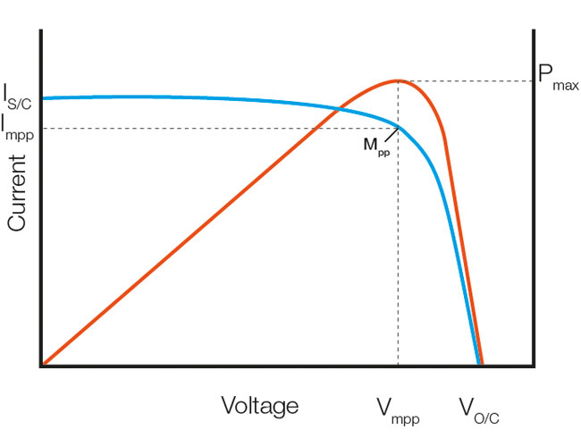 Normálně si představ I/U křivku panelu.