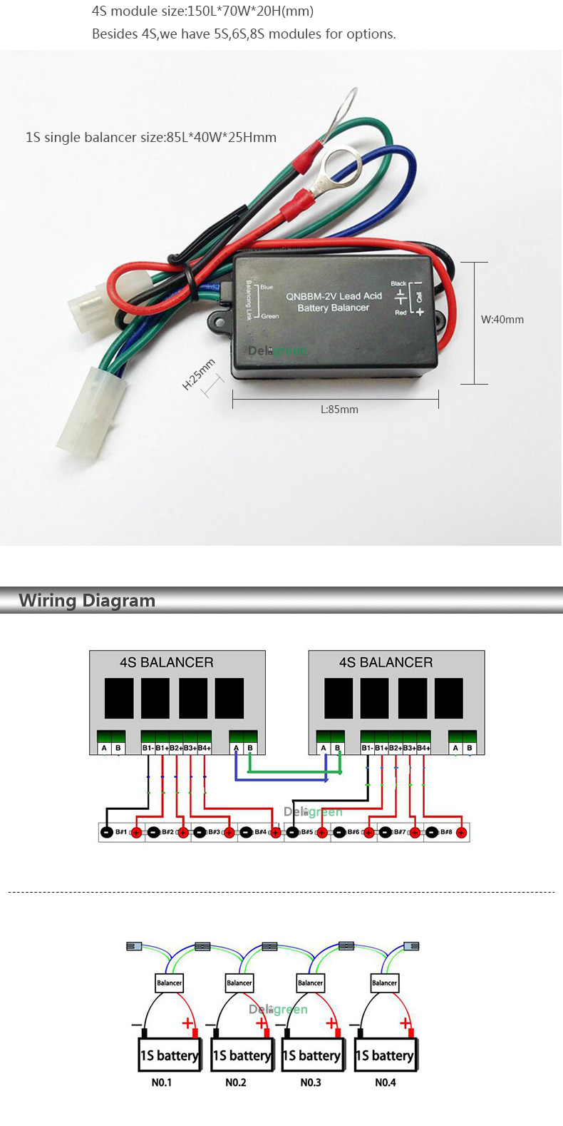 Vhodné pro LiFePO4 a LiFeYPO4 bateriové sady 12V (4 články 3,2V) s libovolnou kapacitou. Propojení více balancovacích modulů navzájem je možné. Pro vyšší kapacity článků nebo pro vyšší nabíjecí a vybíjecí proudy je potřeba kombinovat tyto balancéry s CellLoggery nebo komplexními BMS včetně možnosti odpojení nabíjení, vybíjení nebo komunikace s měniči.