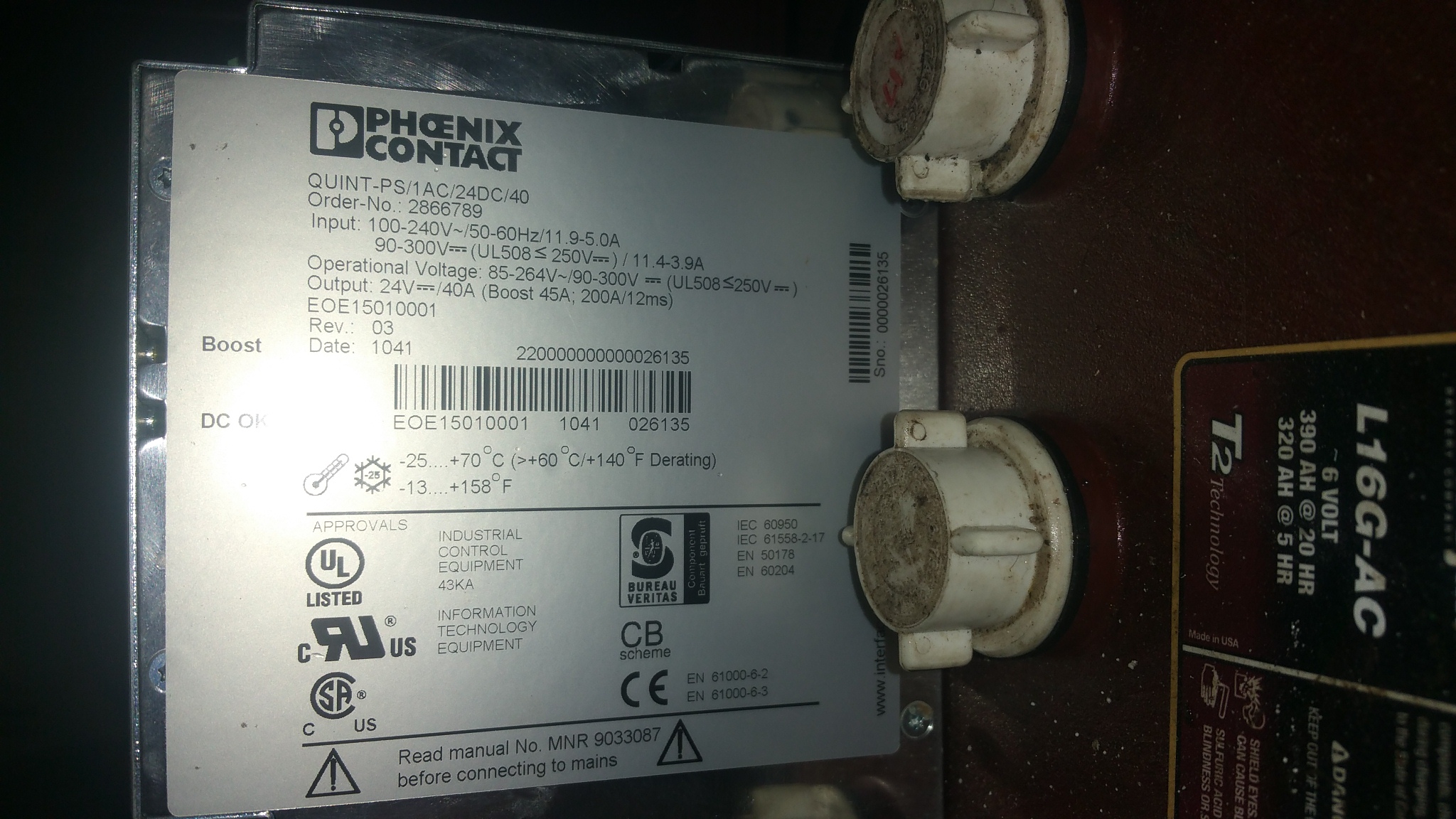 Nabízím zdroj Phoenix Contact s nastavitelným napětím 18-29,5V a maximálním proudem 40A. Zdroj je stabilní, vhodný například pro nabíječky s maximálním napětím kolem 17V. Cena je 1200 Kč plus poštovné, momentálně jsou některé kusy již rezervovány.