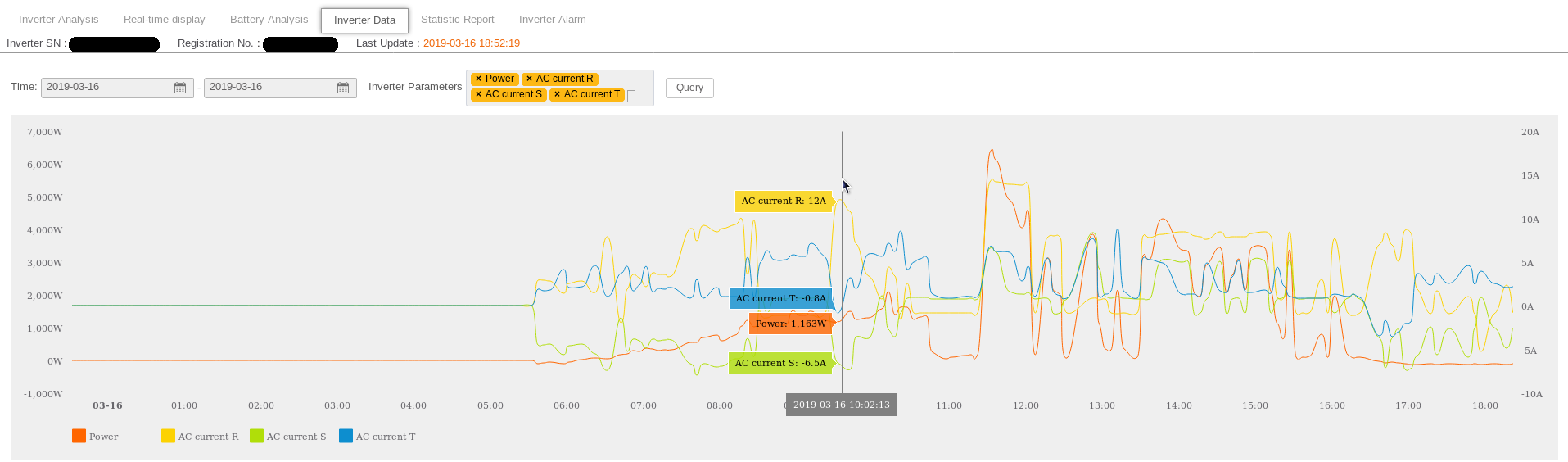 Nový monitoring https://www.solaxcloud.com je dost bída. Je tam vidět pouze výkony. Nejsou tam nikde vidět fázové proudy napětí výkony na straně sítě, soláru i akumulátoru. A když se přeruší spojení tak měnič si žádné data neukládá a po obnovení spojení je nedoplní. Takže v grafu výkonů jsou občas při výpadku spojení 0 hodnoty i když ve skutečnosti tam tekla energie.