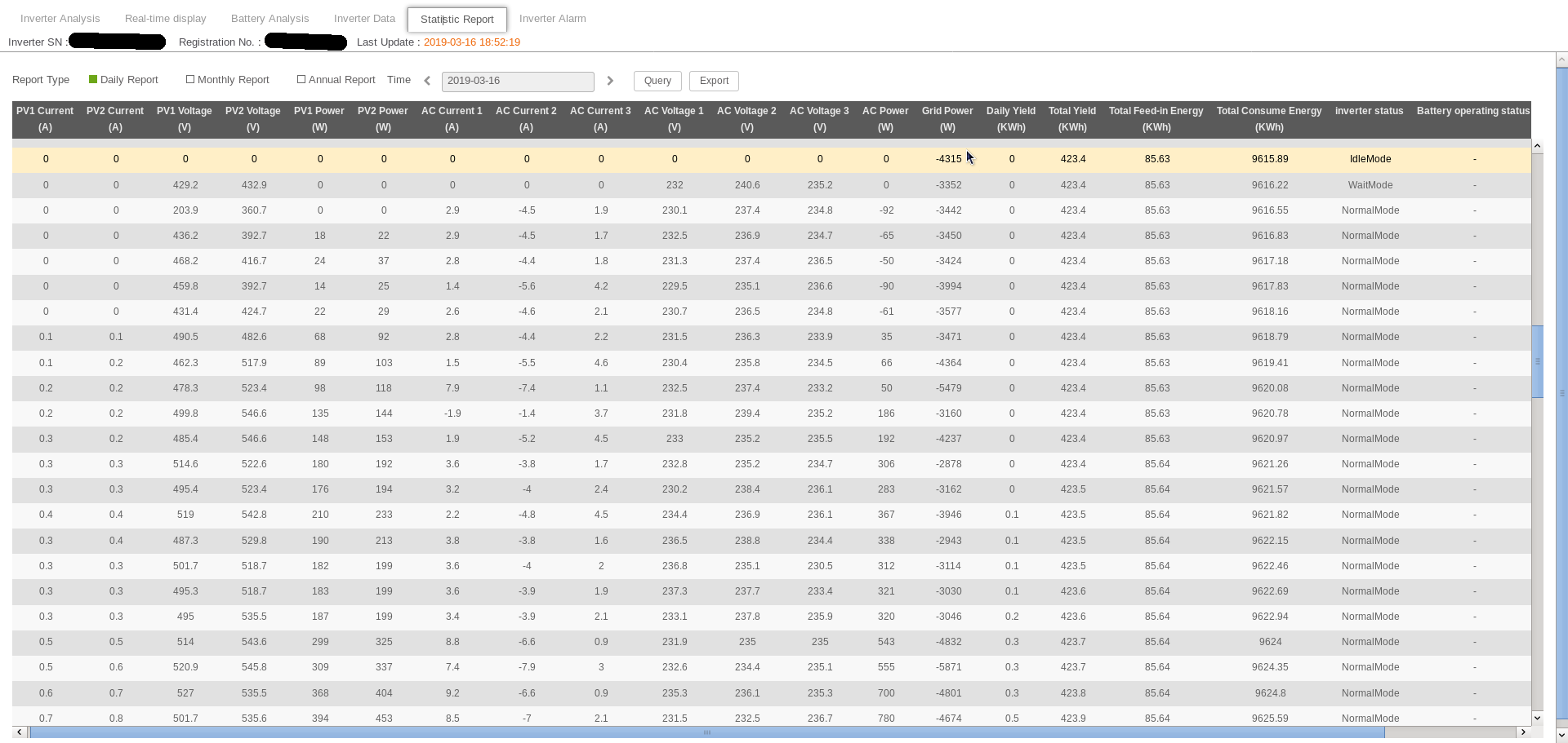 Tak omlouvám se, všechna potřebná data v tom monitoringu jsou, musí se kliknout na Inverters a tam kliknout na daný střídač.
