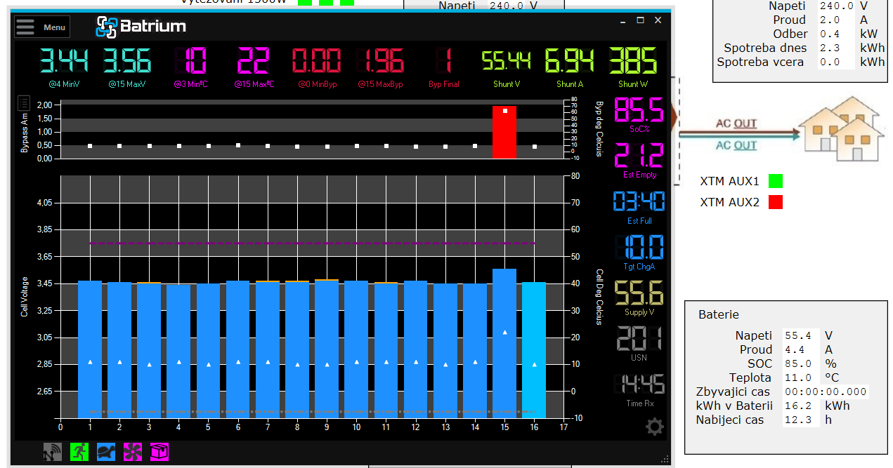 Mě se to Batrium líbí čím dál víc. Koukám, že to ukazuje i balanční proud pro jednotlivé články (a že článek č.15 má nějvětší balanční proud, teplotu i napětí).