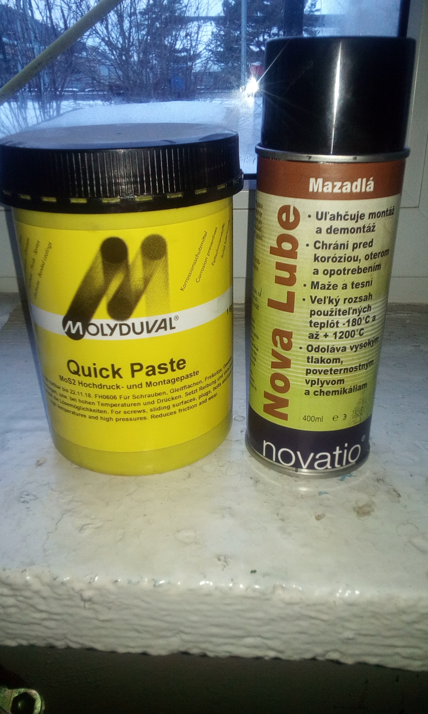 Ještě drobnost k nerez spojováku: pokud se to nemá na závitu zadřít, je potřeba používat montážní pastu na nerez, párkrát už mě ten na pohled skvělej materiál vytrestal totálním svařením závitovýho spoje, pokud to bylo bez pasty, a z oleje si to nic nedělá...