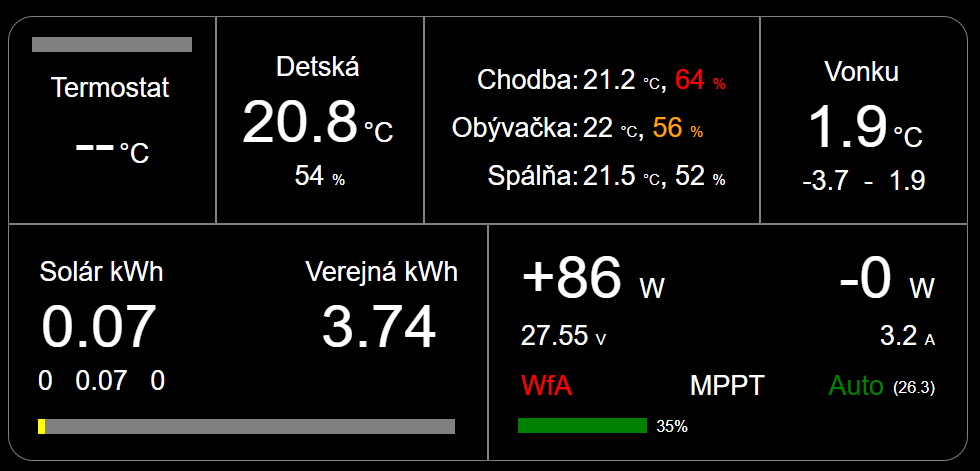Zatiaľ fungujeme na manuálnom vetraní. Na komode je non-stop zapnutý starší mobil s takýmto dashboardom: