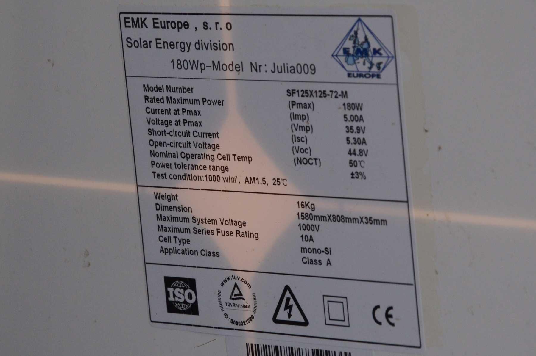 Panel je z druhej ruky, originalitu štítku neviem dokázať. Myslím, že po 15 - 30 minútach trvalého výkonu je už panel teplotne dávno stabilizovaný.
