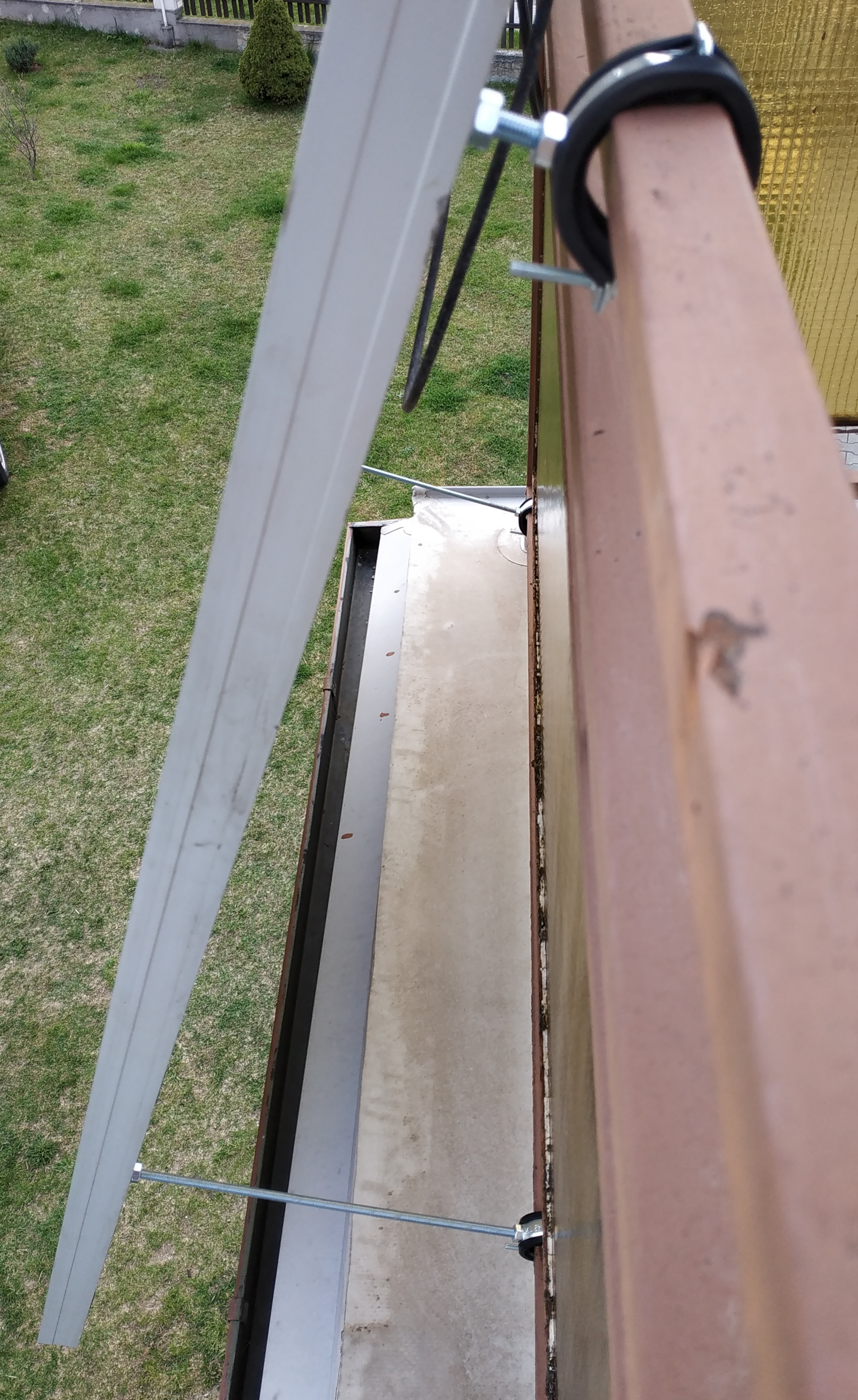 Presne toto som riešil cca pred týždňom - akurát ja mám vrch zábradlia rúrku. Kúpil som vo vodoinštalatérskom obchode objímky s gumou na ktorej je navarená aj matica s vnút. závitom. Kúpil L držiaky s dierami a špekuloval ako to uchytiť. Pri skúšobnom provizornom osadení som ale skonštatoval príliš malé naklopenie voči horizontu a navyše manželka povedala že to tam nechce. Takže som nútený ich dať na vedlajšiu garáž - na strechu.