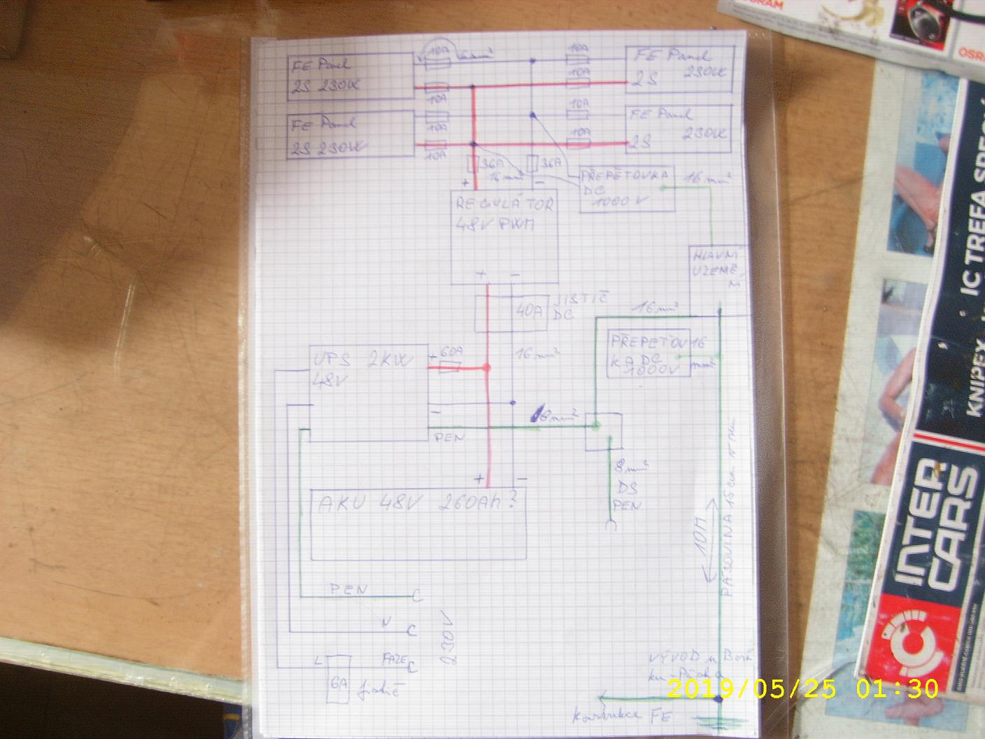 Dobrý den.Po přečtení ruzných příhod,uder blezku nebo naindukovaný napětí sem zatím zapojil mou zkušební FE strojovnu takto.vis obrázek.Poraďtě co zlepšit nebo upravit.Na mé nepovedené fotce snad bude něco vidět.Zatím nejsou namontovány přepě'tovky 100V těsně před regulátorem.Regulátor je od venkovního rozvaděče ca 6-7m .Jak je koupím tak namontuji.Z plánku to není poznat,ale všechny pojistky a hlavní uzemnění je mimo .Vše je na stěně venku pod FE panelama.Děkuji za návrhy a připomínky.