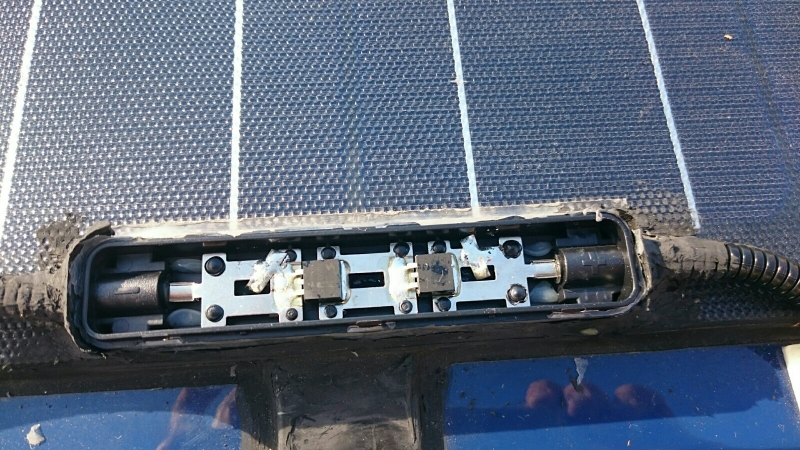 Díky vám všem za rady, bohužel to vypadá, že oba panely jsou zničené. Diody jsem změřil a jsou v pořádku (z jedné strany propouští, z druhé ne). Diody jsem i odstranil a stejně jsem naměřil 0V, 0A. Kdybych nebyl naštvaný, tak bych se vtipu o dodávce na střeše i zasmál. Bahno není bahno, ale tmel, kterým jsem opatlal (ano uznávám, že dost prasácky) ten box s diodami proti vniknutí vody. Řeším tedy reklamaci s výrobcem (Čína Allpowers), který mě sám upozornil, že mám panely stále v záruce 18 měsíců a nabídl, že mi buď vrátí peníze nebo pošle panely nové. Chce natočit video z měření + odstranění diod a znovu změření. Moc se na to ale neupínám, protože mě v mém věku už naivita opustila.